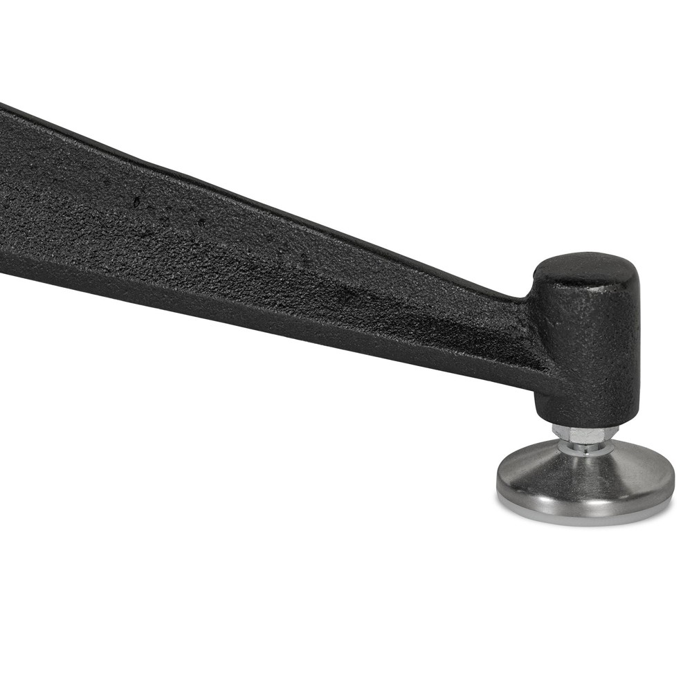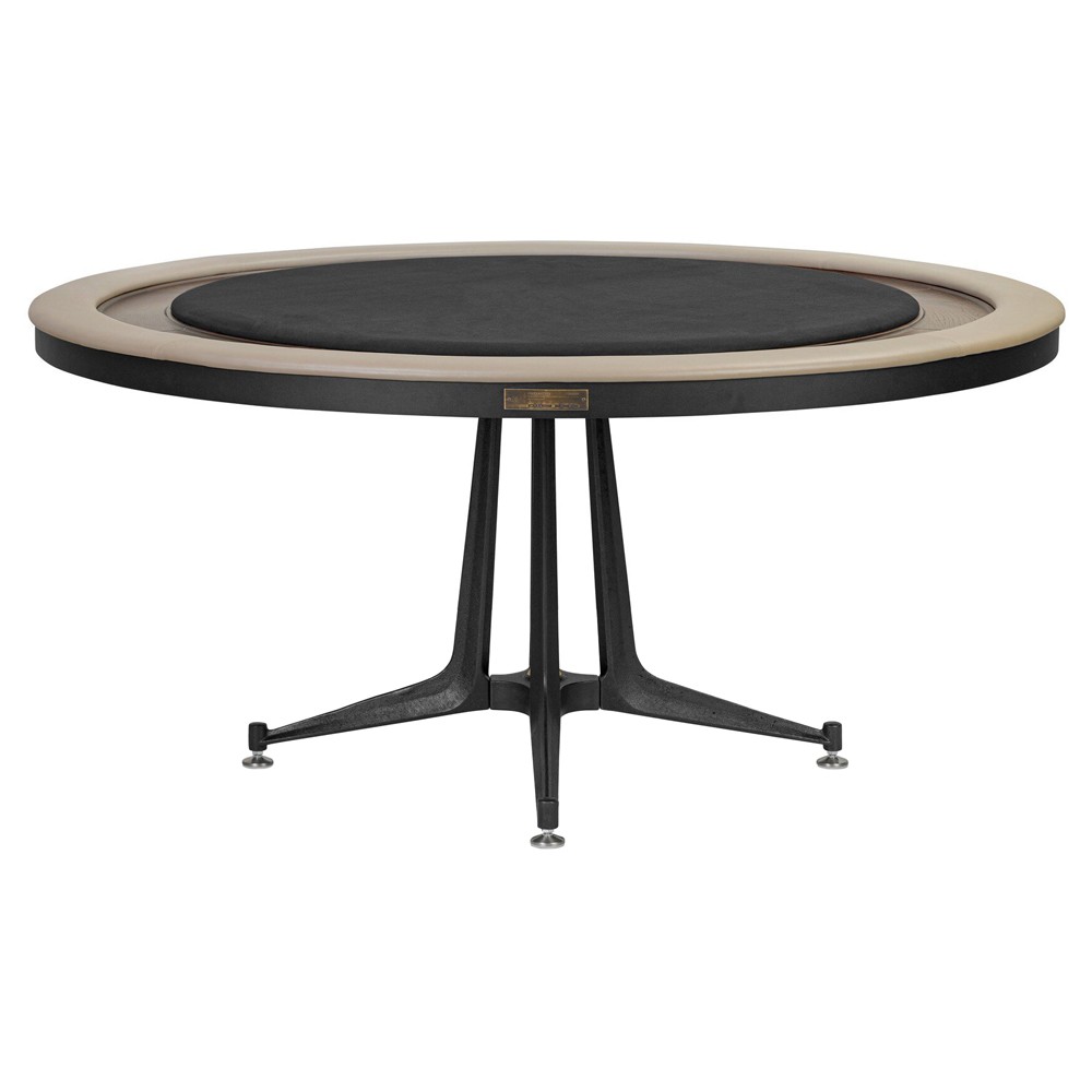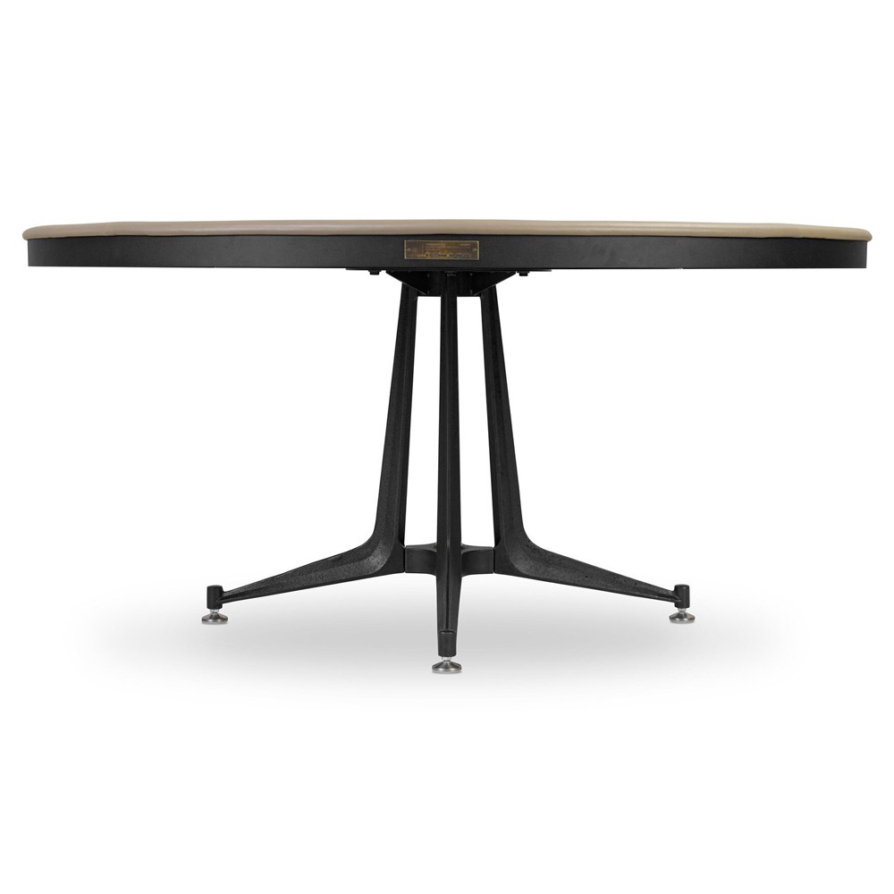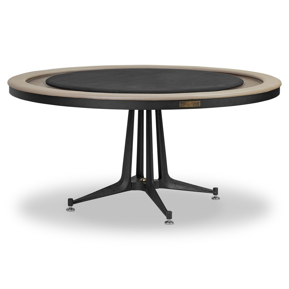 • Features a felt-covered wood tabletop for smooth card play, leather-cushioned edge for comfort and an industrial cast iron pedestal base with adjustable feet
