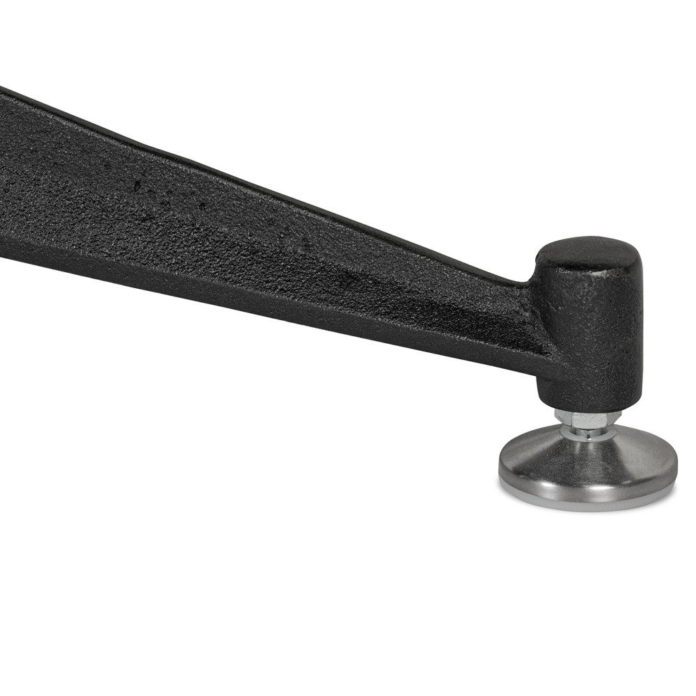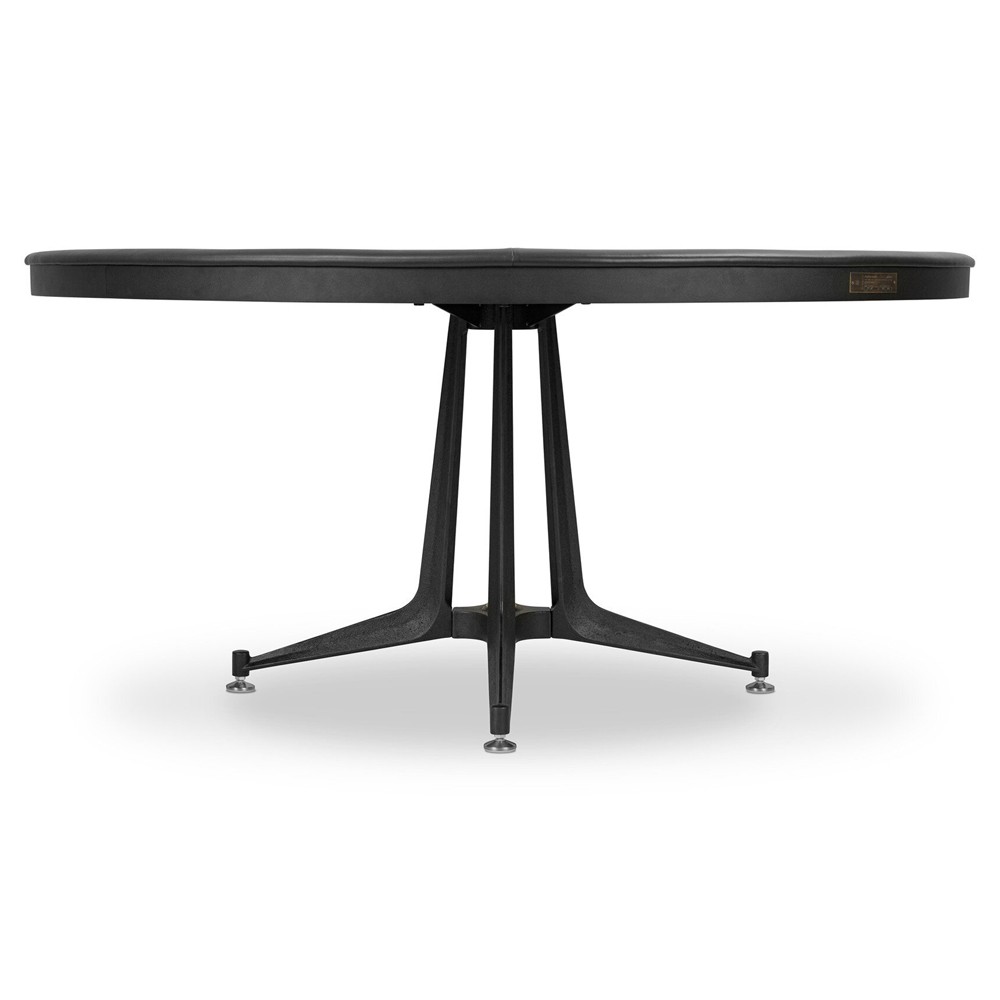 • Features a felt-covered wood tabletop for smooth card play, leather-cushioned edge for comfort and an industrial cast iron pedestal base with adjustable feet