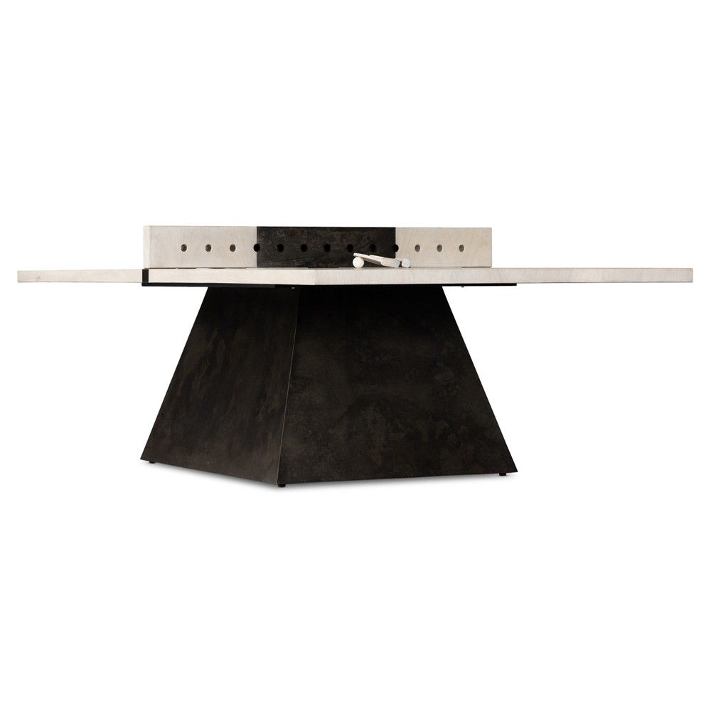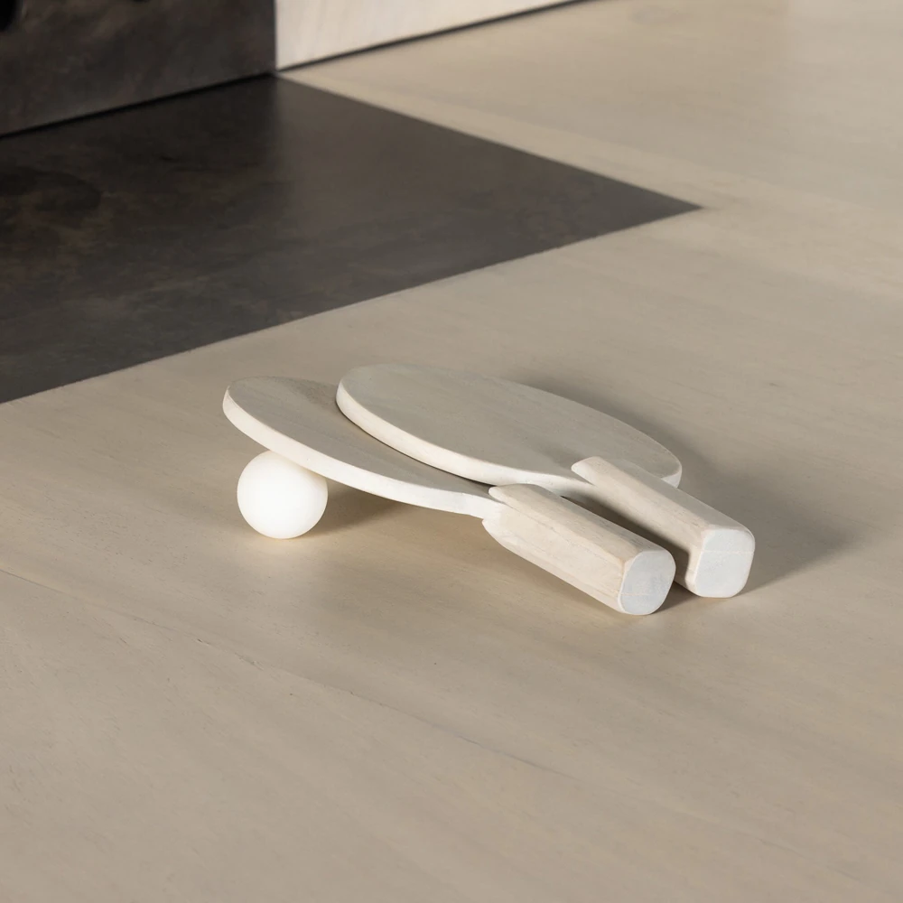 • Features a handcrafted blend of bleached Guanacaste wood and aged metal, with a magnetic removable net, and includes 4 wood paddles and 4 balls for 2G??4 players