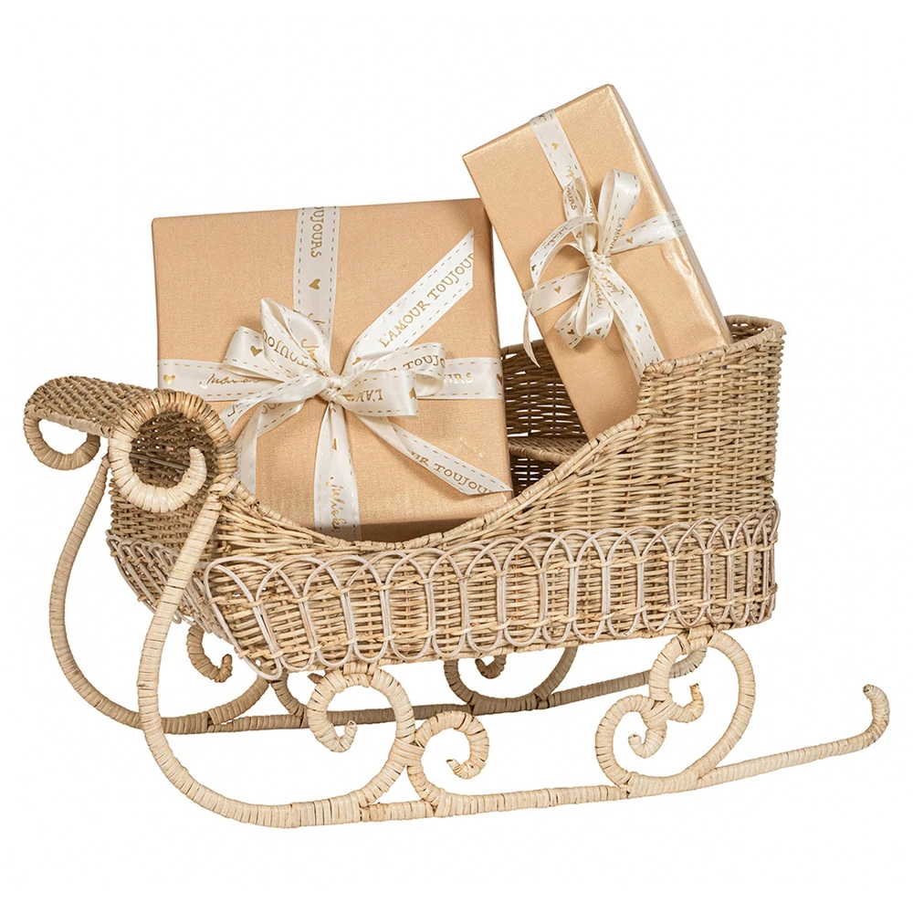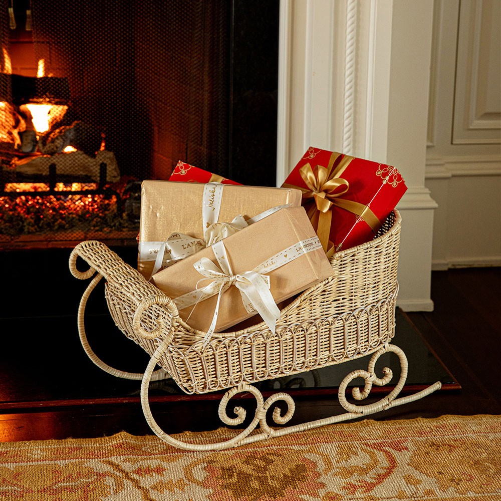 Juliska Provence French Country Whitewash Rattan Sleigh Floor Basket