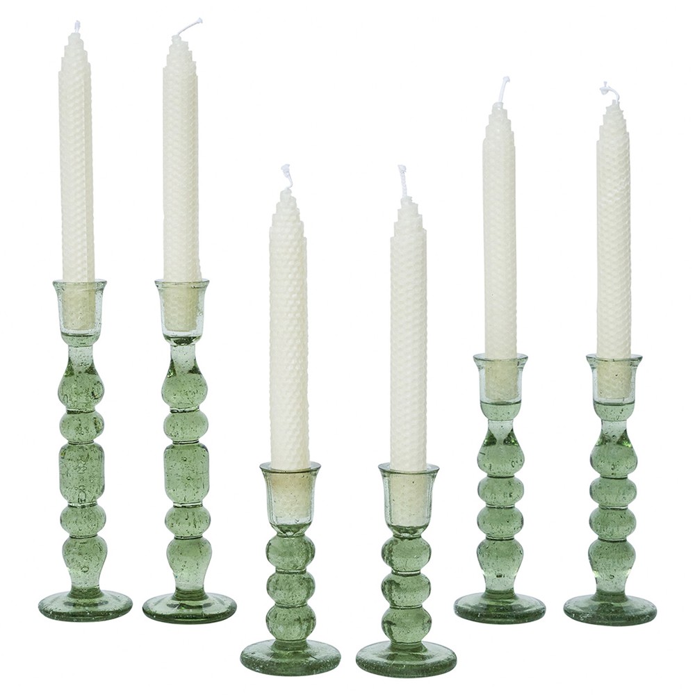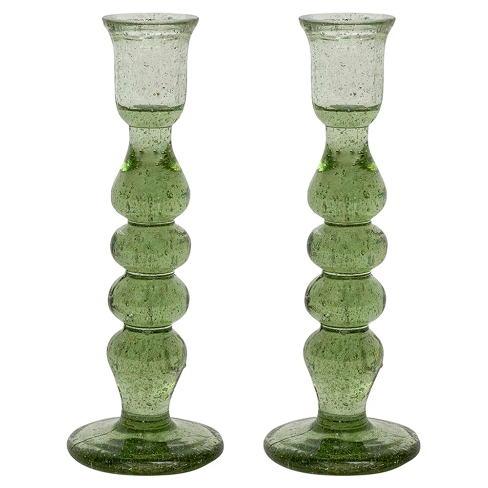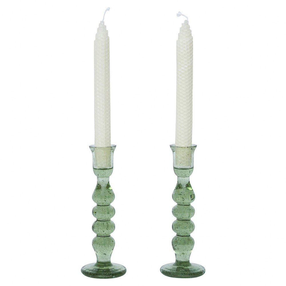 Juliska Provence French Country Basil Glass 7" Candlestick Holder - Set of 2