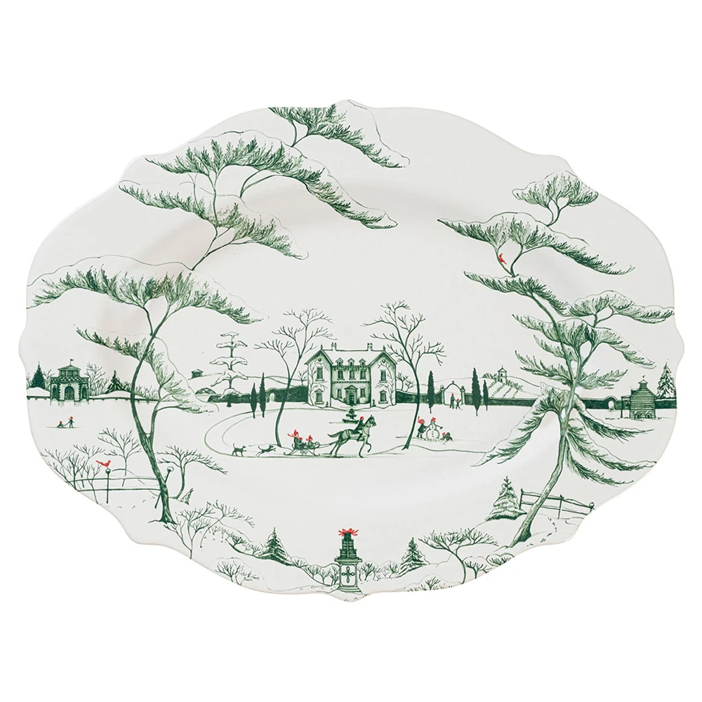 Juliska Country Estate Winter Frolic French Evergreen Ceramic Serving Platter