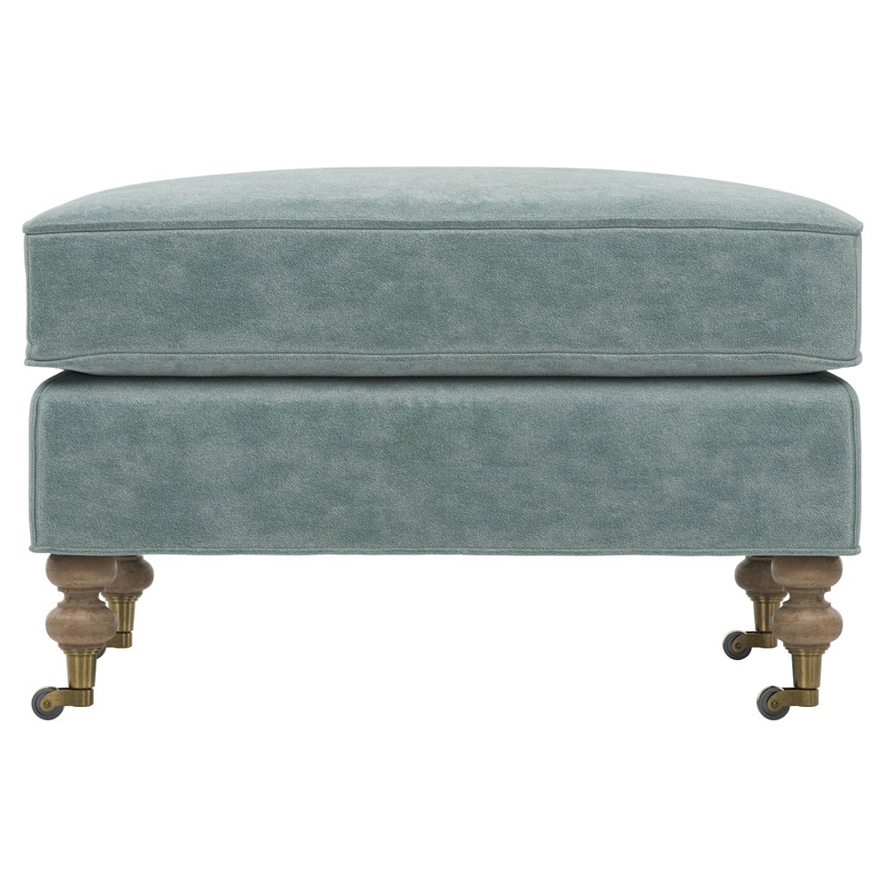 Carter Traditional Light Blue Performance Velvet Caster Rectangular Ottoman