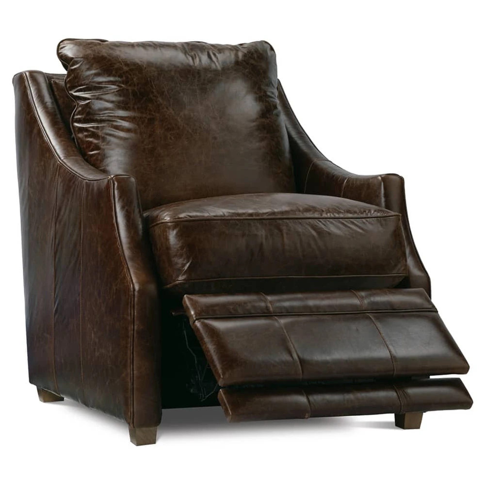 • Peregrine Updated Traditional Hickory Brown Leather Power Recliner Chair|Kathy Kuo Home