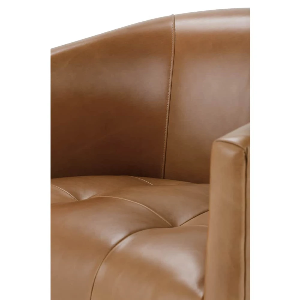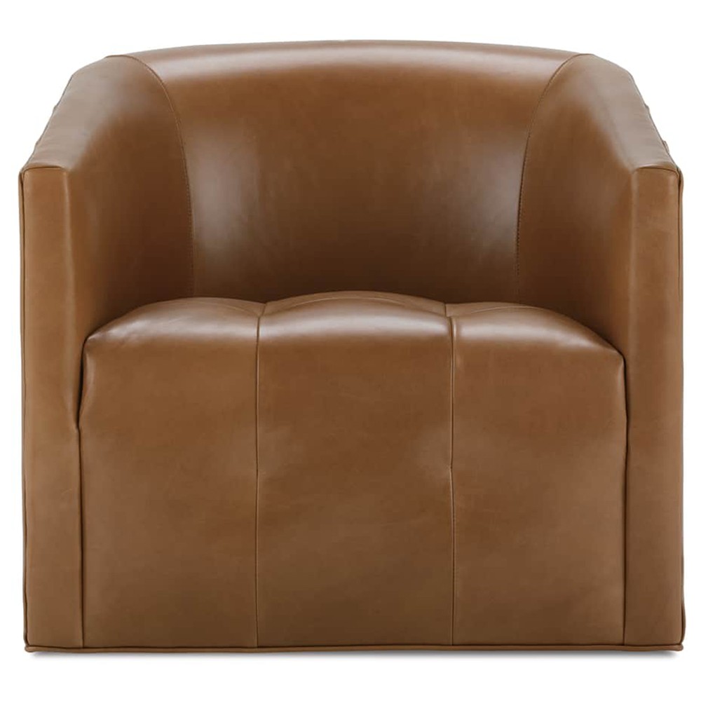 Zevanna Updated Traditional Caramel Brown Leather Barrel Swivel Chair