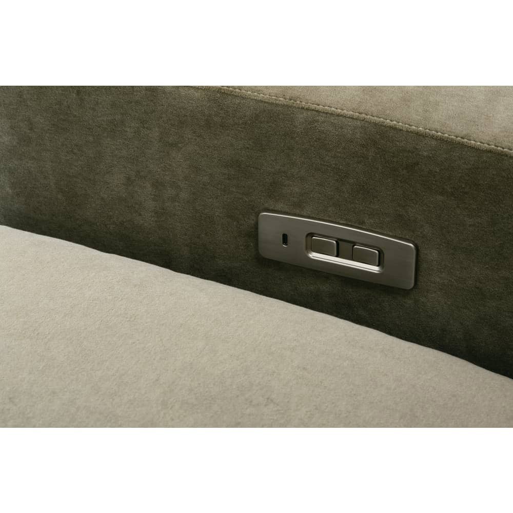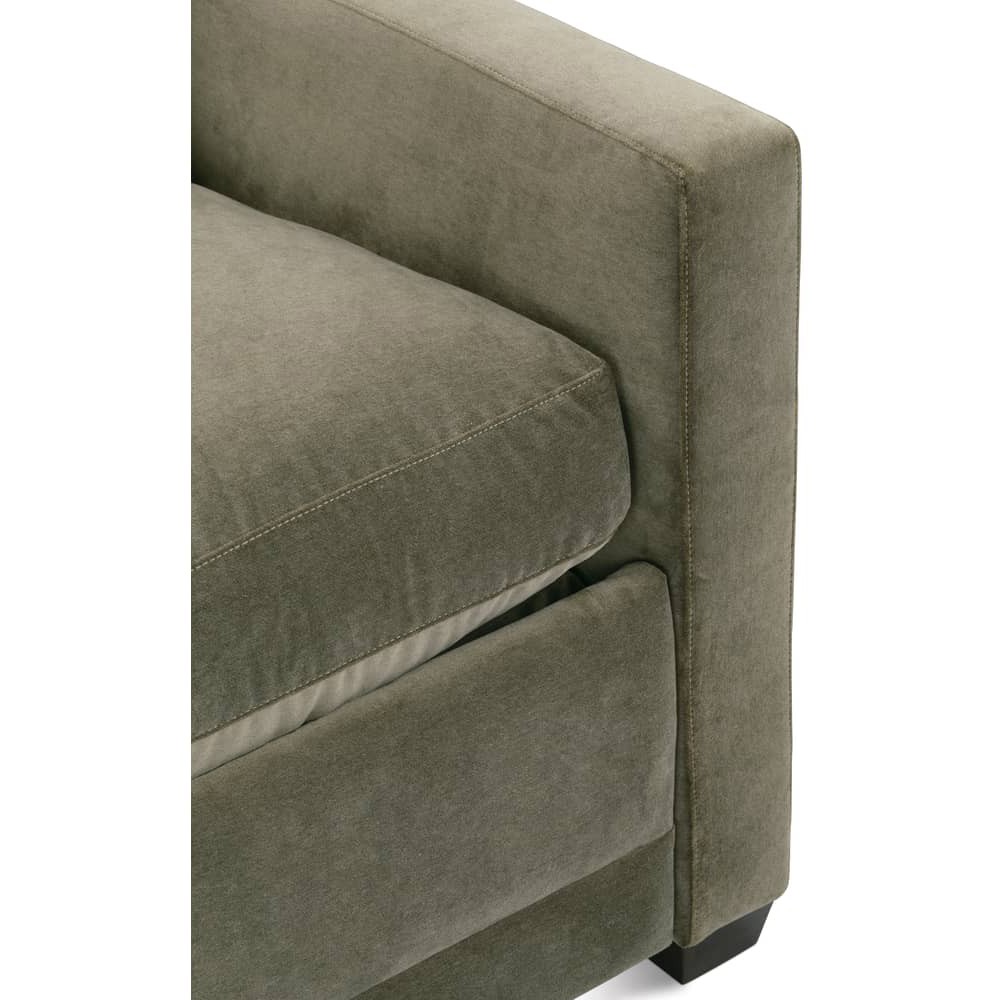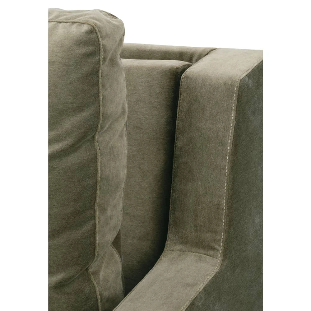 • Upholstered in olive green velvet fabric. Fabric content: 82% polyester and 18% cotton; Rub count: 50,000