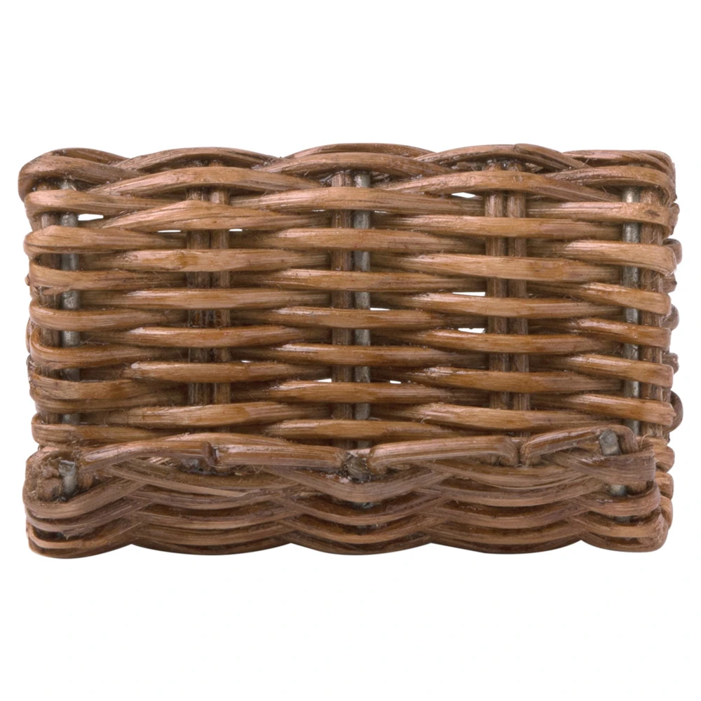Annmarie Coastal Beach Pine Green Woven Rattan Woven Napkin Ring - Set of 4
