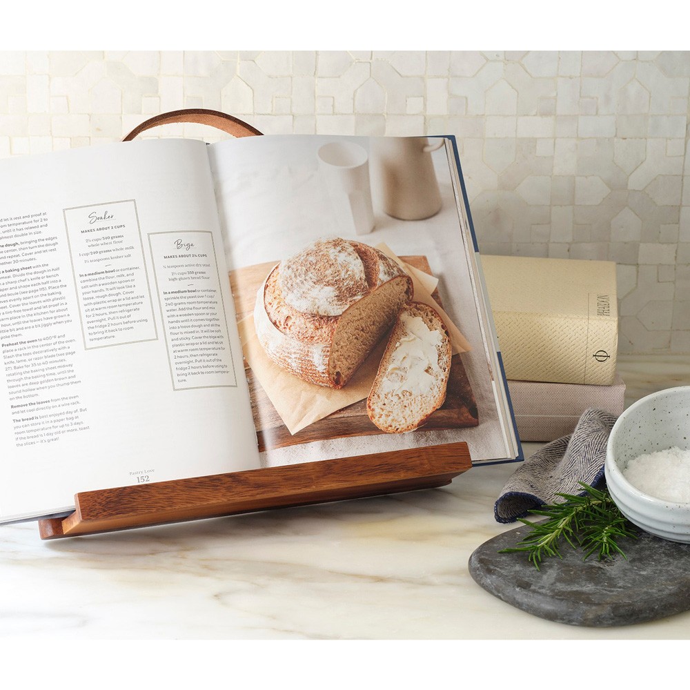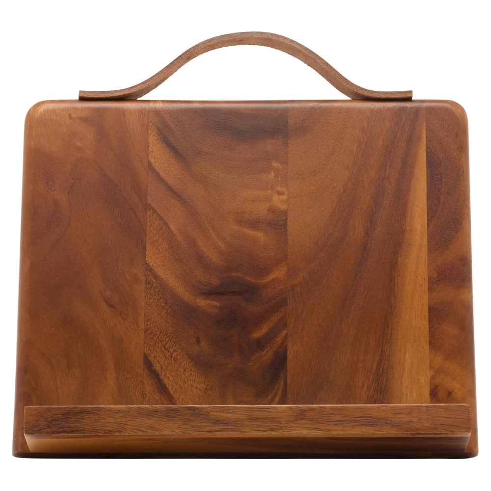 Arwen Updated Traditional Natural Wood Leather Handle Recipe Stand