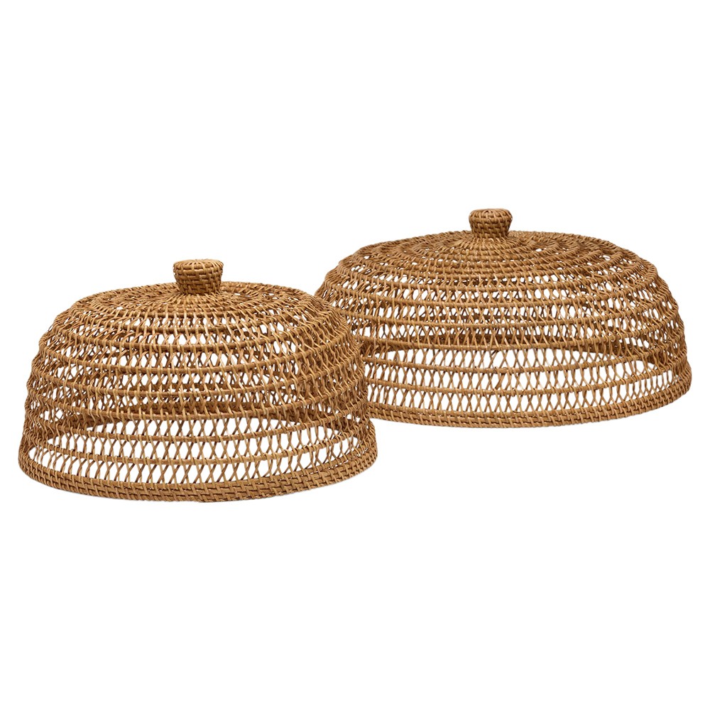 Jacen Coastal Beach Honey Woven Rattan Food Cover - Set of 2