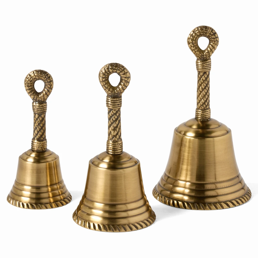 Frannie Updated Traditional Antique Brass Twisted Rope Dinner Bell - Set of 3