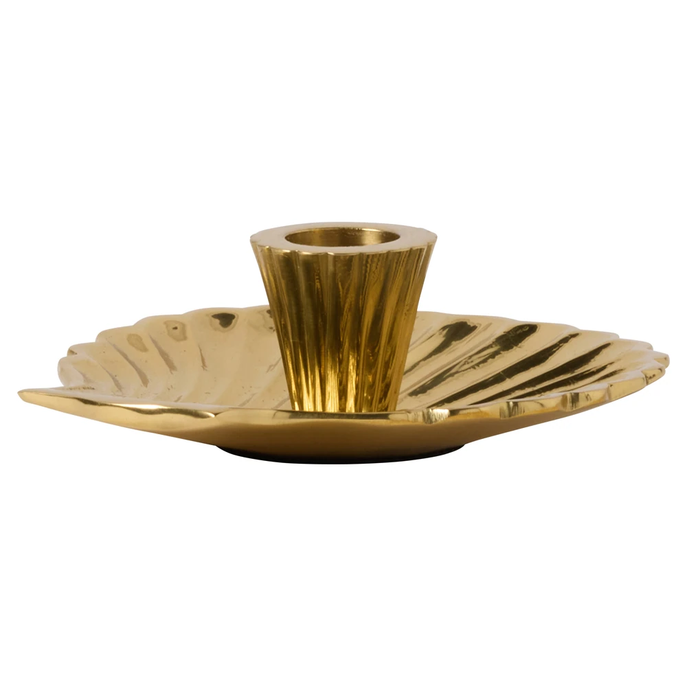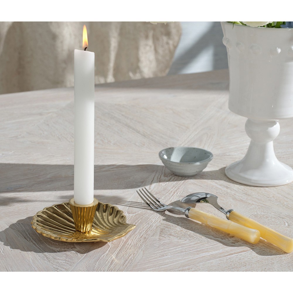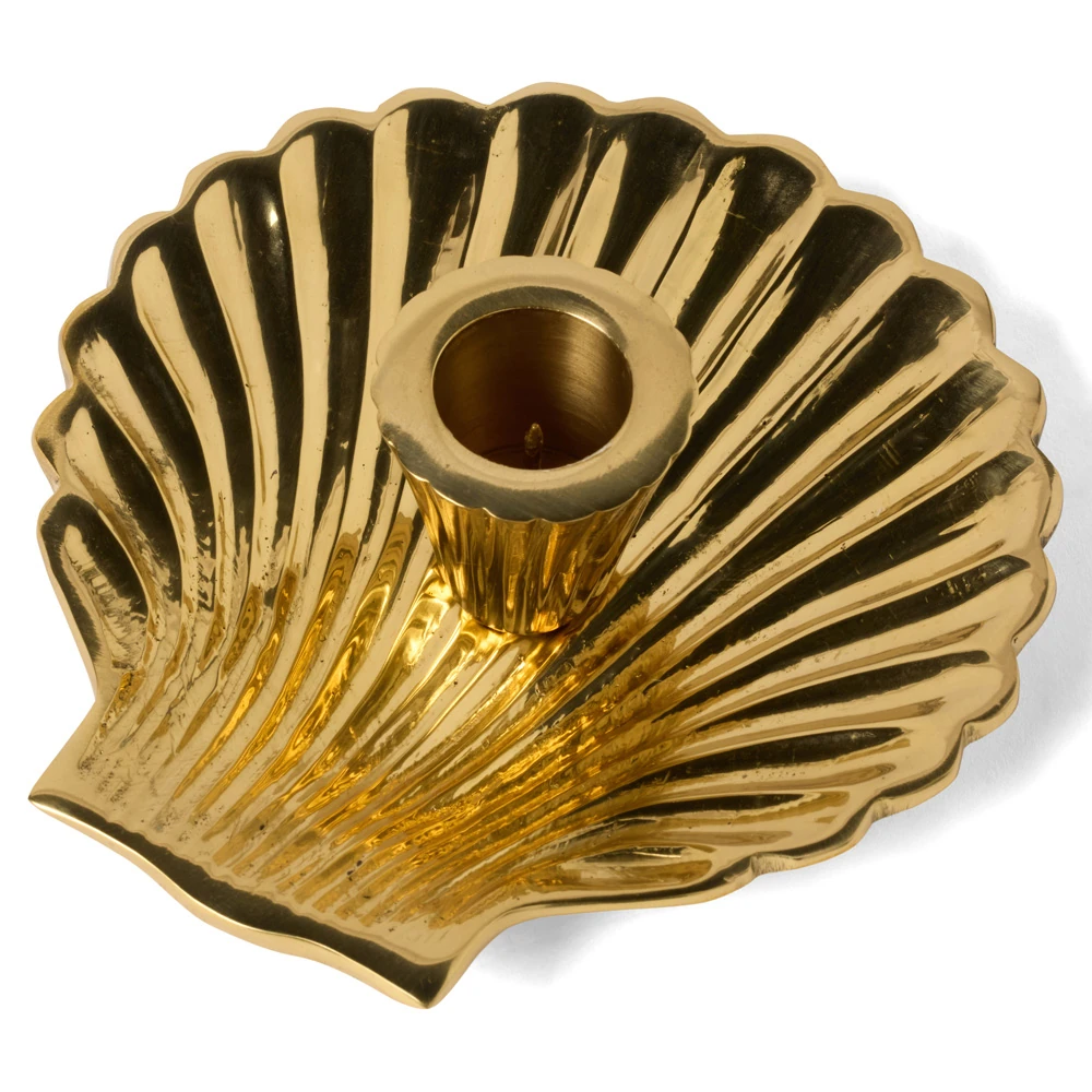 Jovie Coastal Beach Gold Brass Clam Shell Candlestick Holder - Set of 2