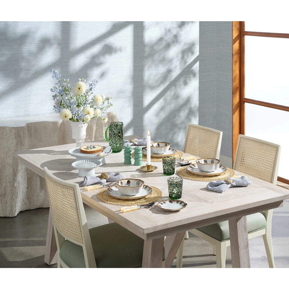 AERIN Colette Coastal Beach Natural Woven Cane Base Glass Hurricane Candleholder