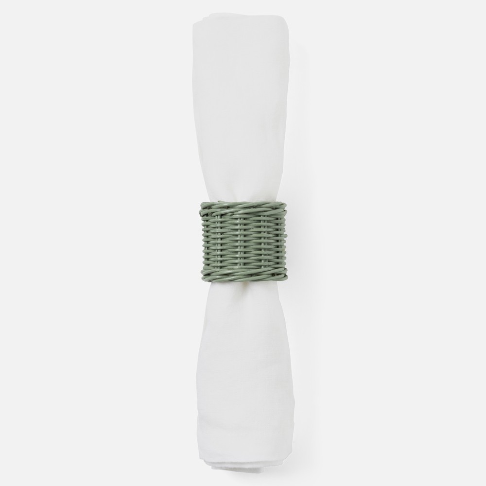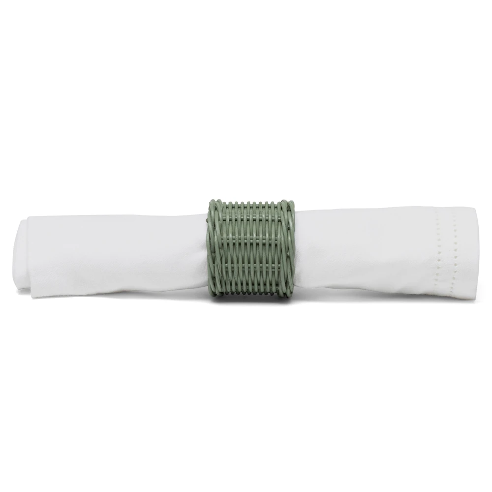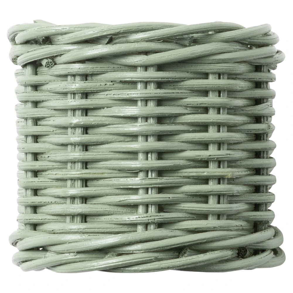 Annmarie Coastal Beach Pine Green Woven Rattan Woven Napkin Ring - Set of 4