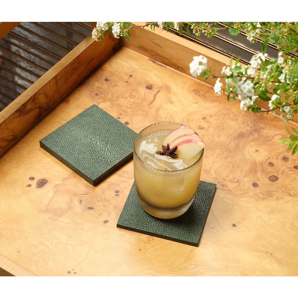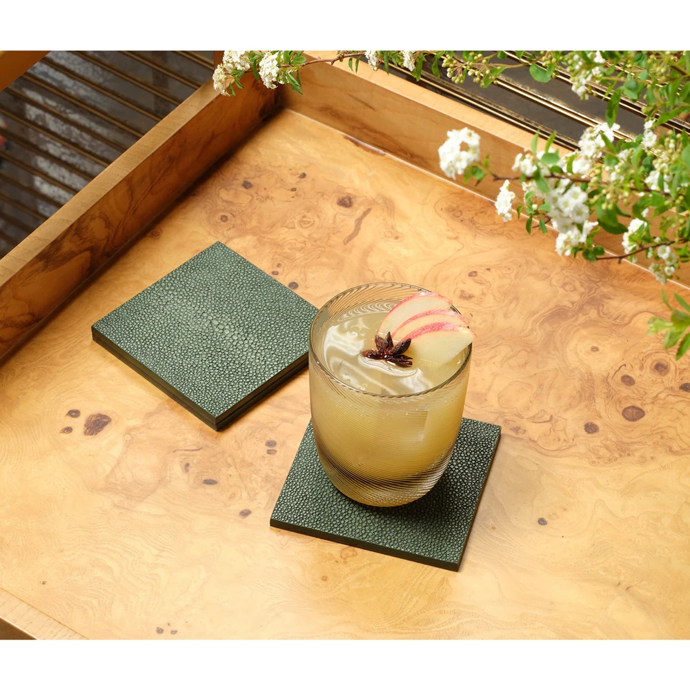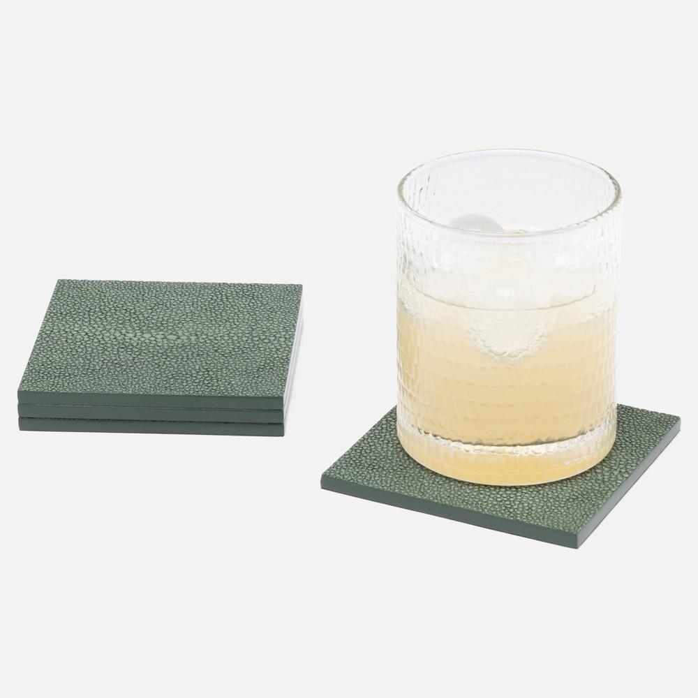 Henry Updated Traditional Juniper Faux Shagreen Square Coaster - Set of 4