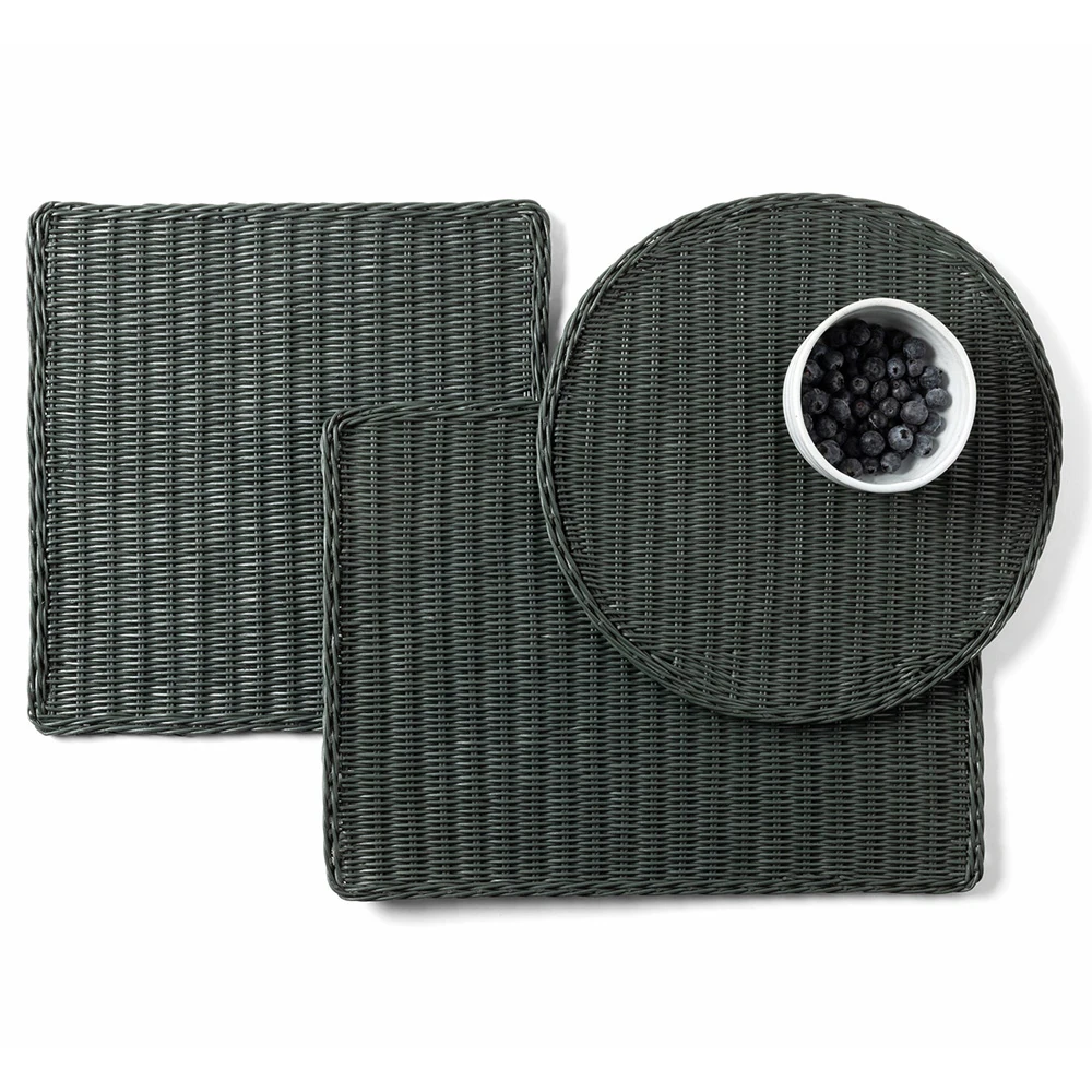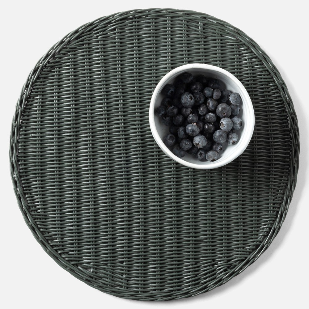 Annmarie Coastal Beach Hunter Green Rattan Round Placemat - Set of 4