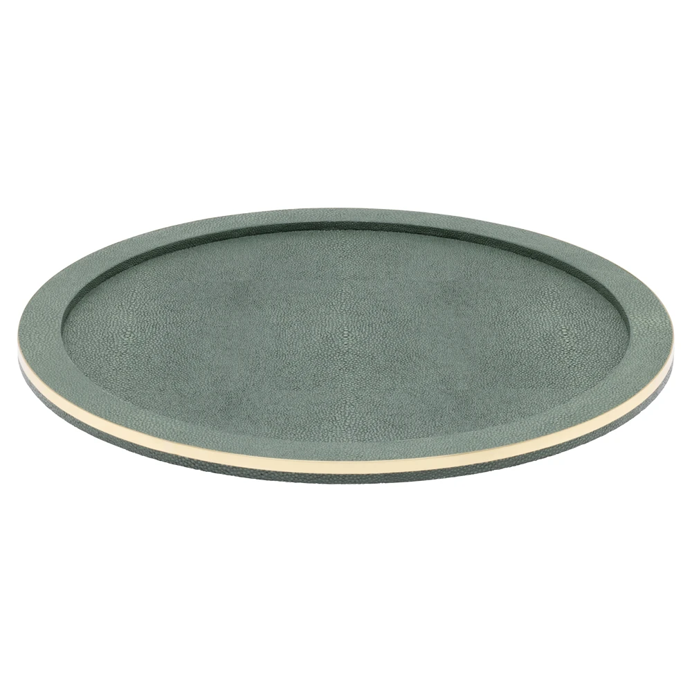 Langston Updated Traditional Juniper Faux Shagreen Round Tray