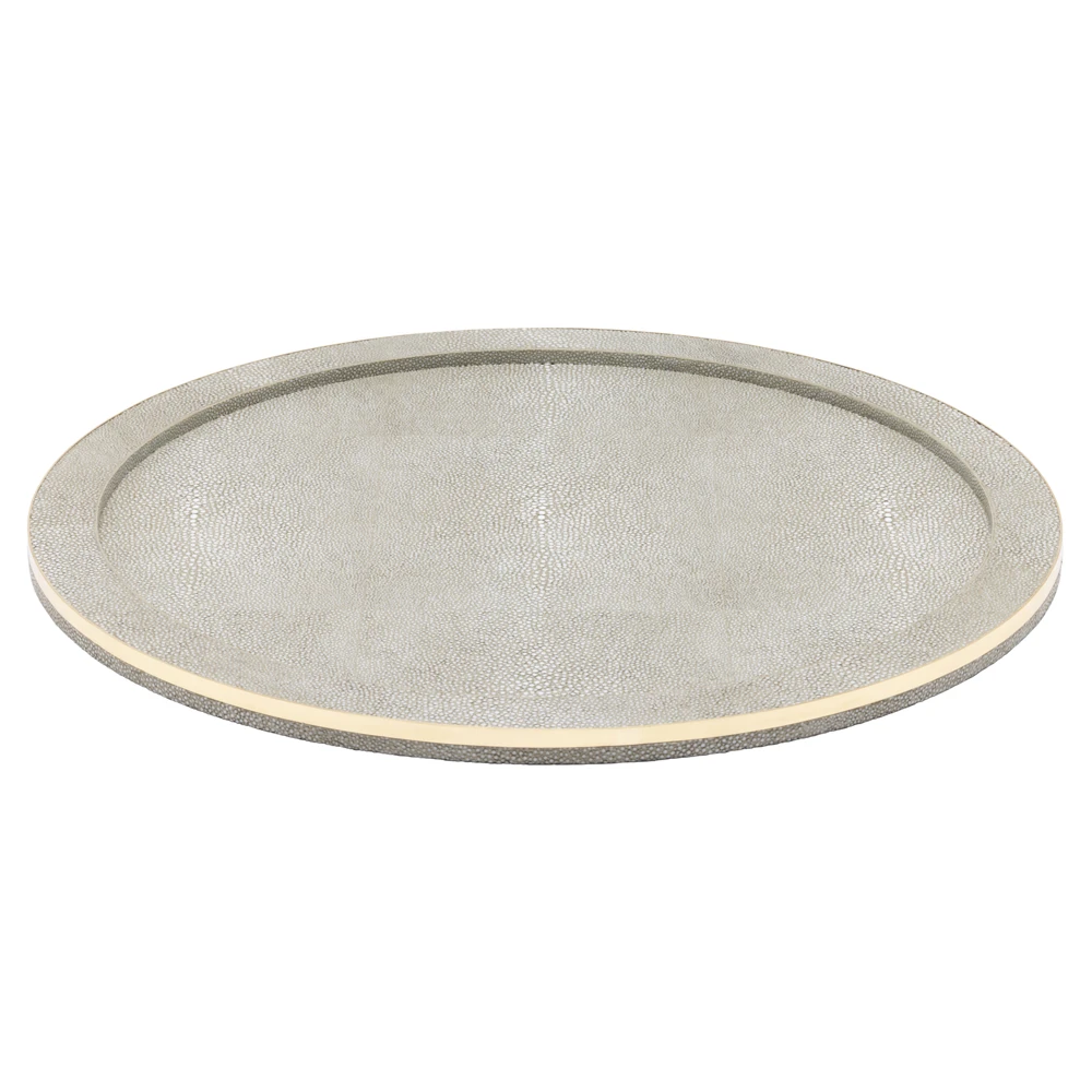 Langston Updated Traditional Sand Faux Shagreen Round Tray