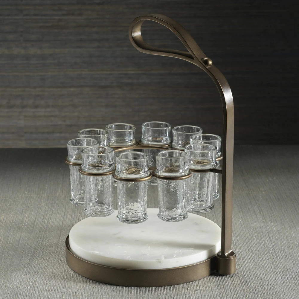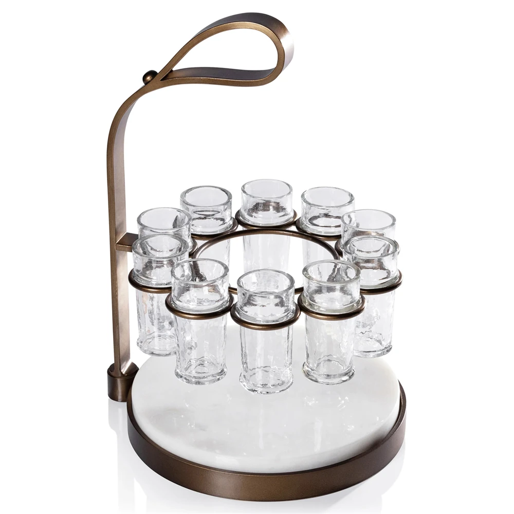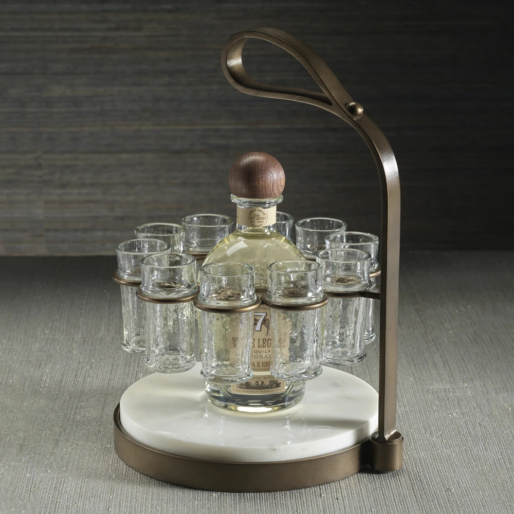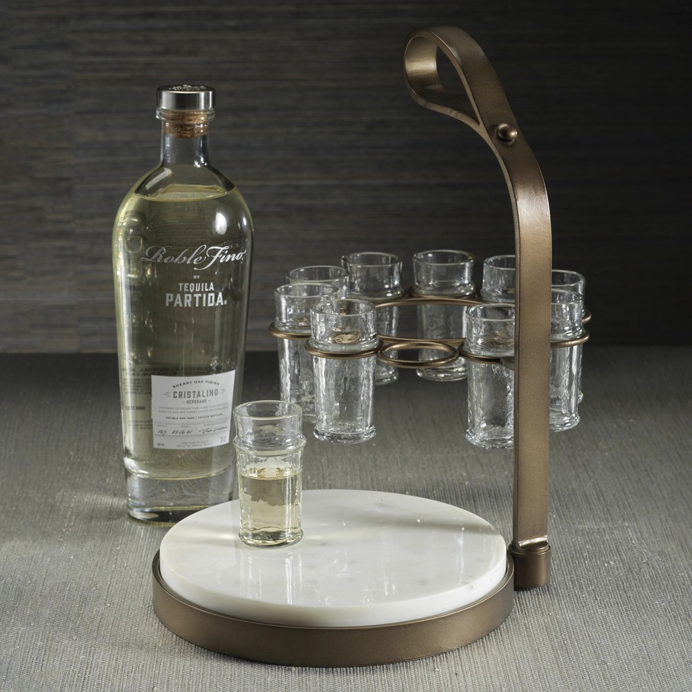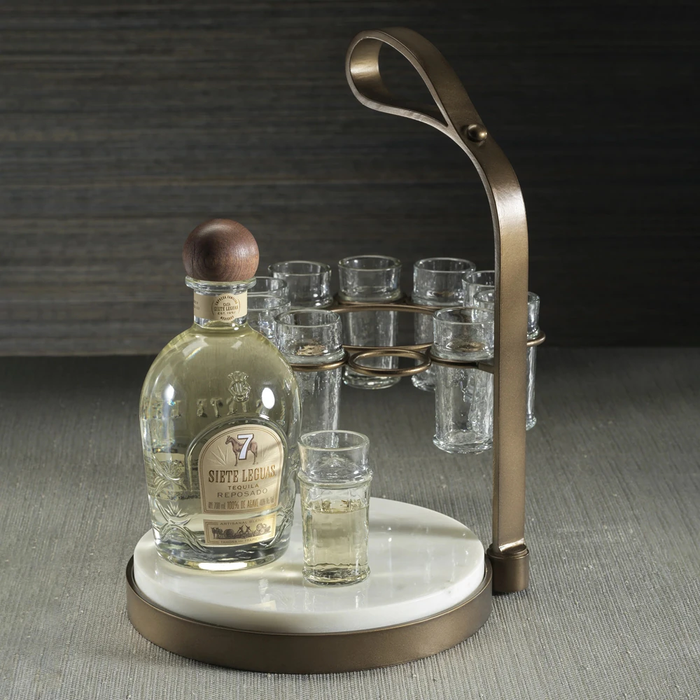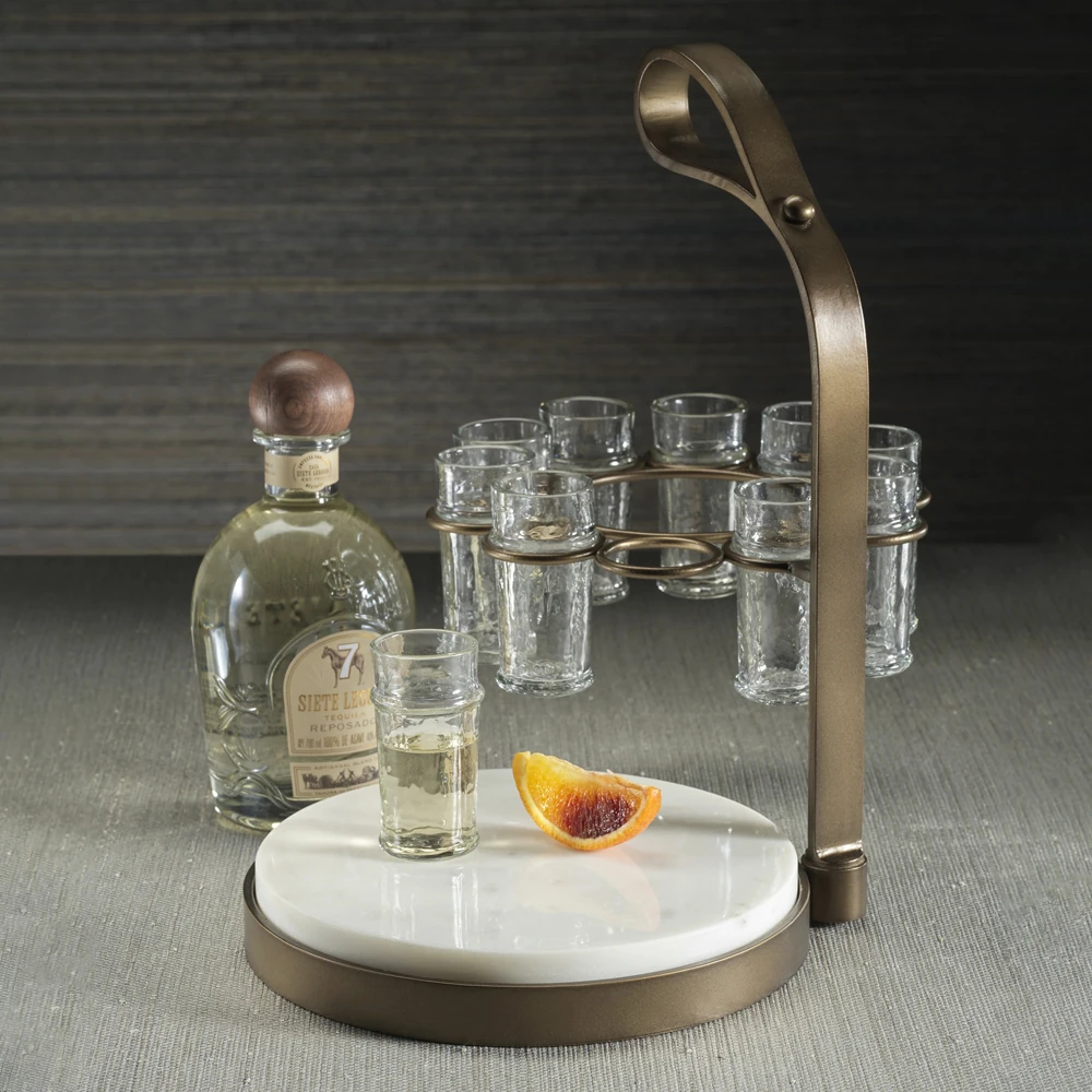 Tristan Modern Tequila Shot Glass White Marble Cutting Board Set