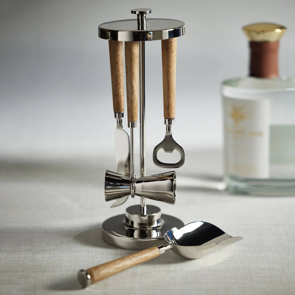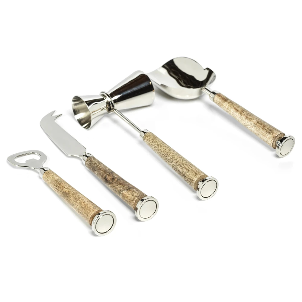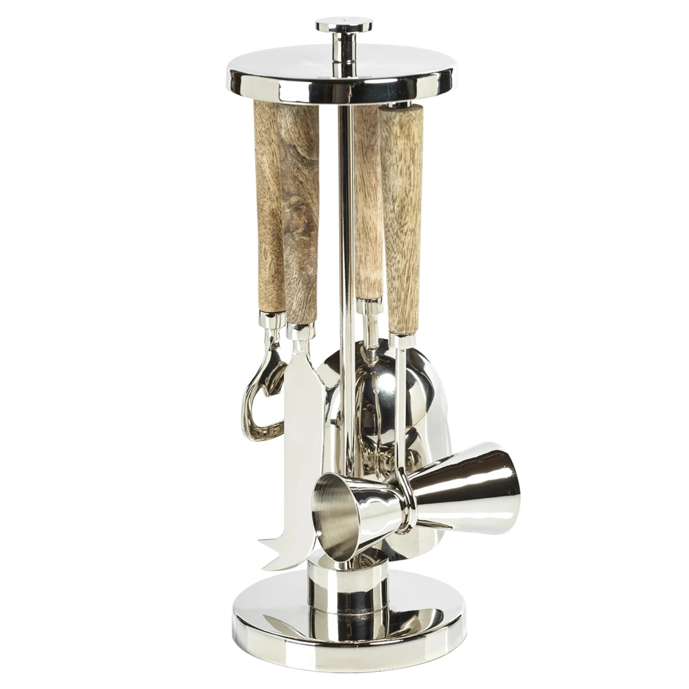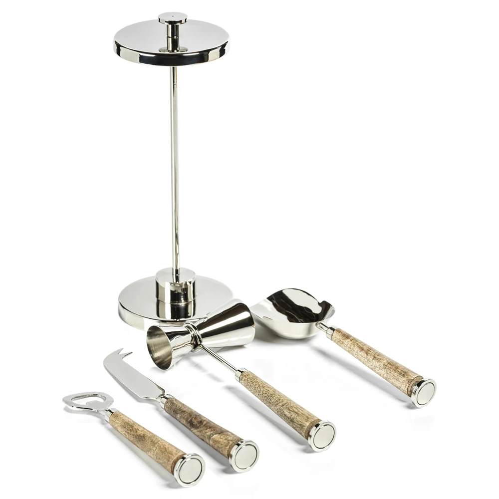 Galo Modern Classic Beige Wood Handle Stainless Steel 5 Piece Bar Tool Set