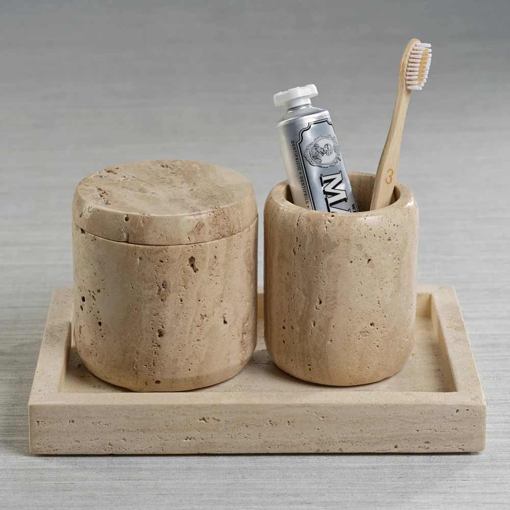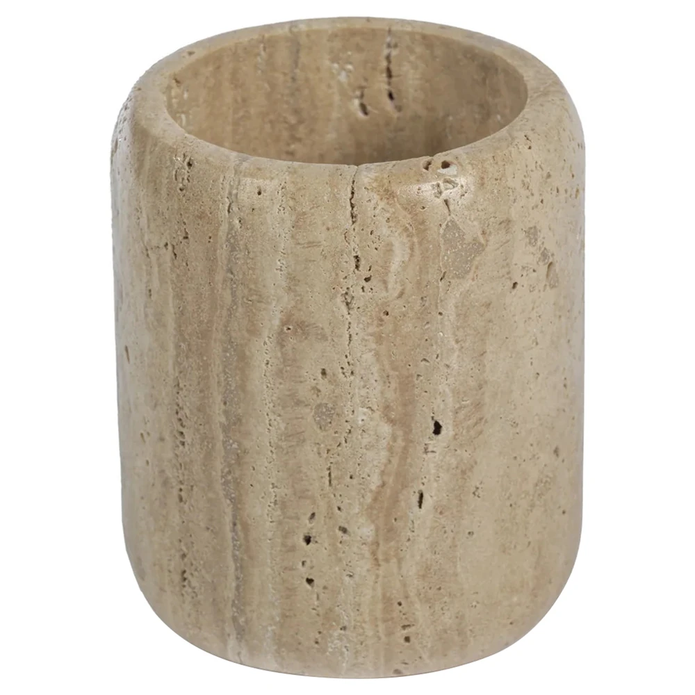 Selene Coastal Beach Beige Travertine Marble Brush Holder