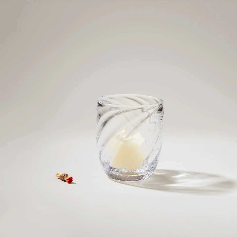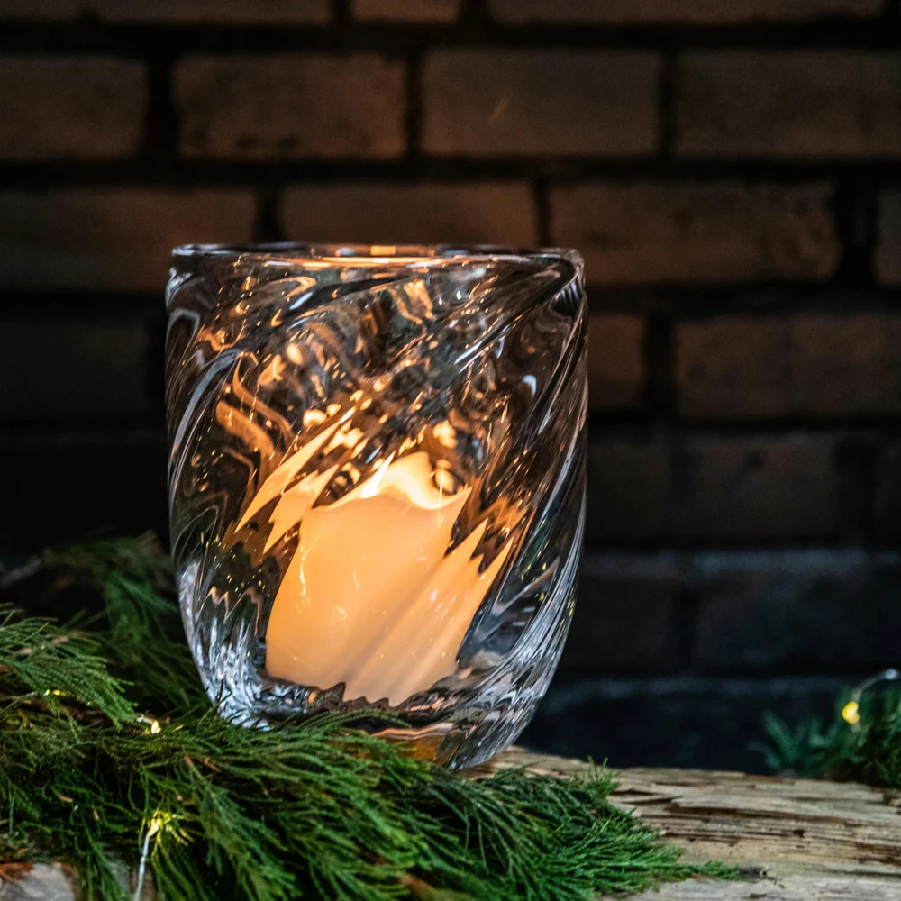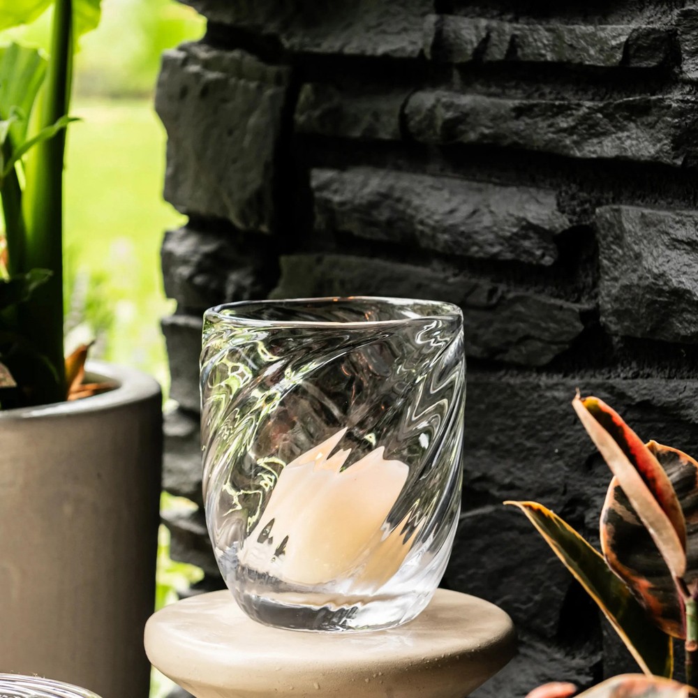 Simon Pearce Calais Modern Classic Optic Glass Hurricane Candleholder