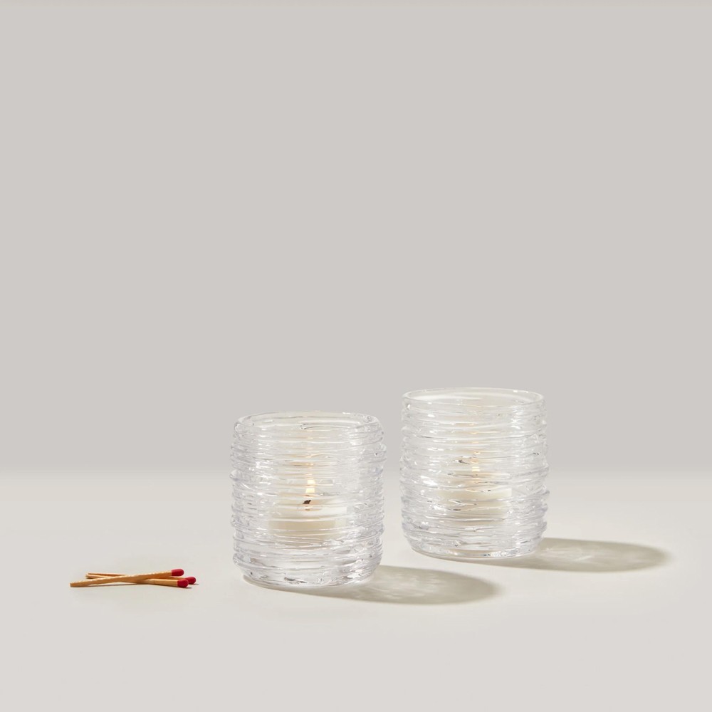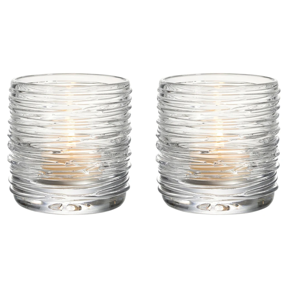 Simon Pearce Echo Lake Modern Classic Glass Tealight Candleholder - Set of 2