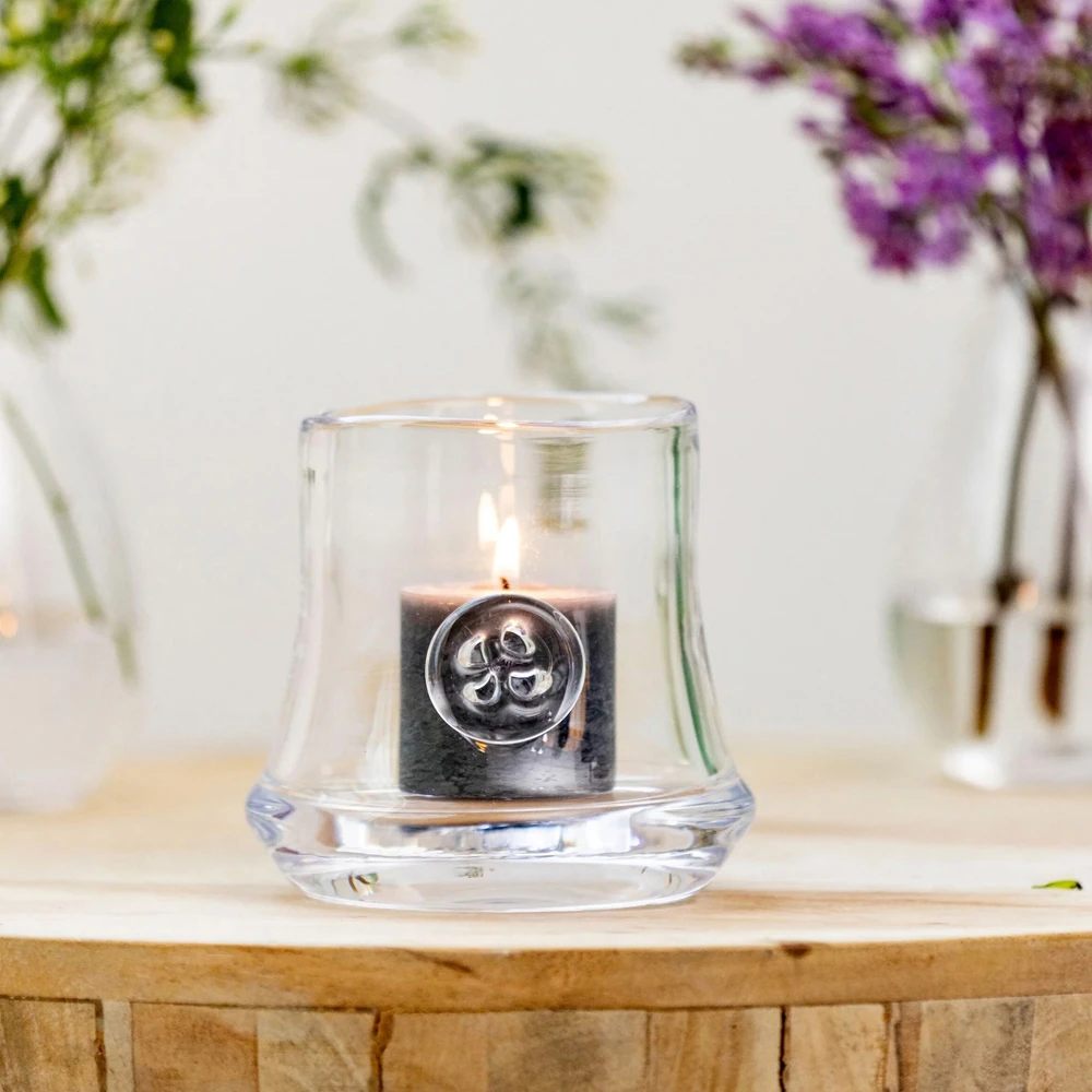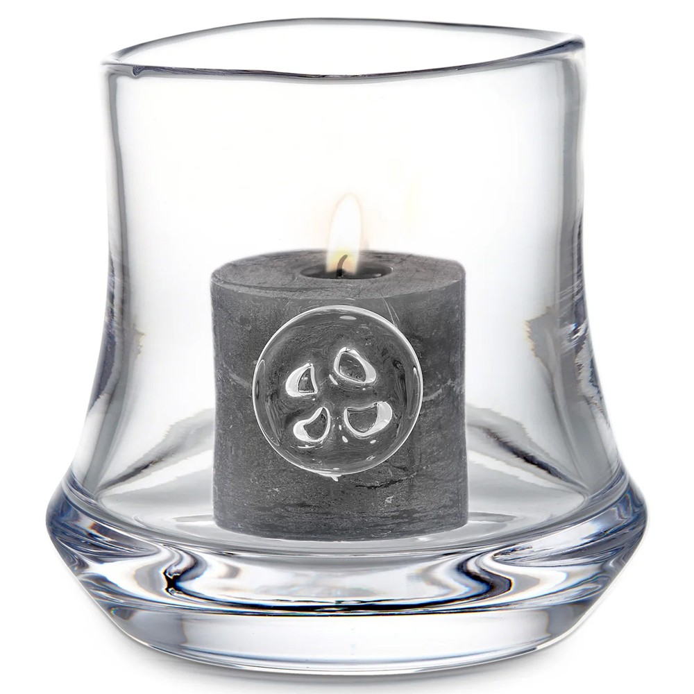 Simon Pearce Nantucket Modern Classic Glass Low Hurricane Candleholder
