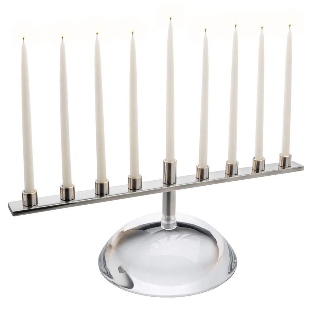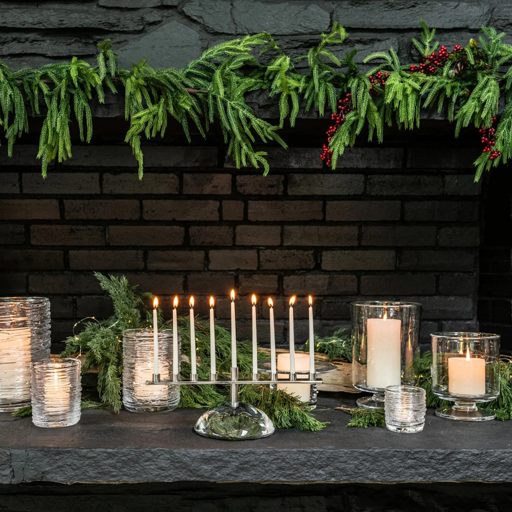 Simon Pearce Riverstone Modern Classic Silver Stainless Steel Menorah Candleholder