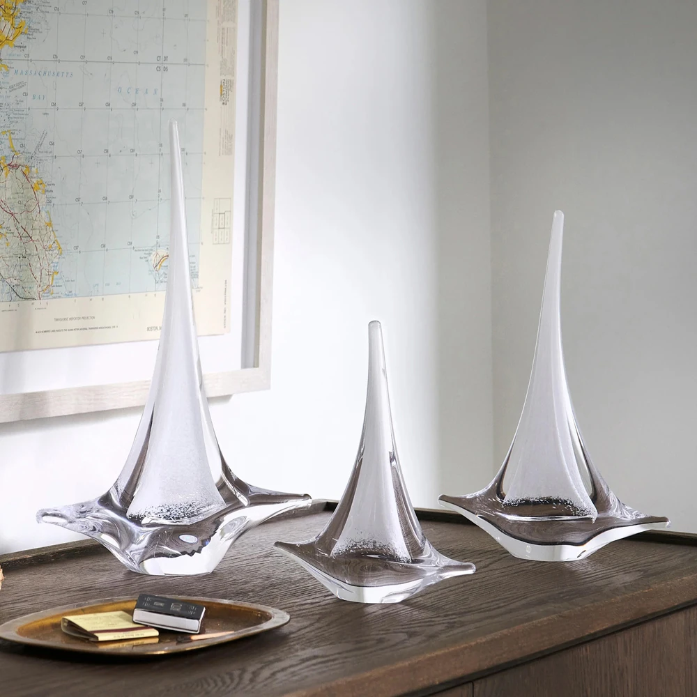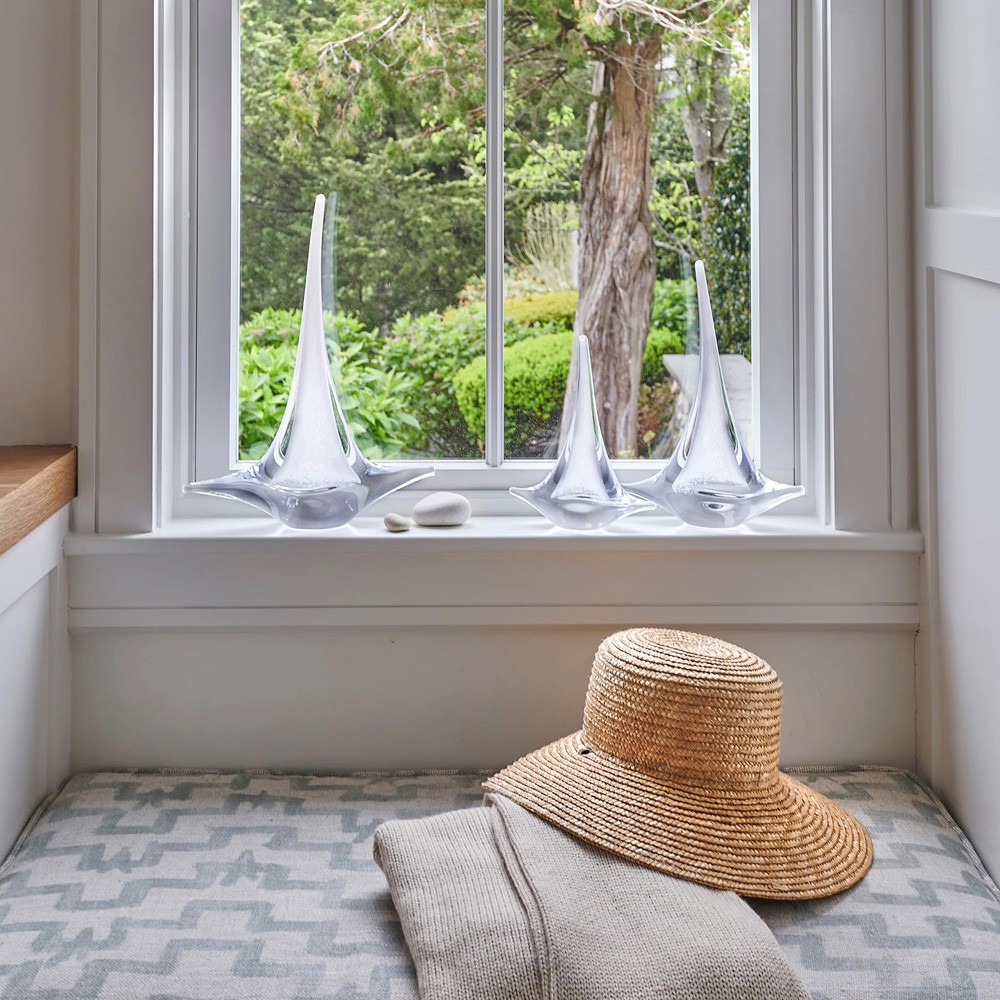 Simon Pearce Coastal Beach White Glass Sailboat Sculpture - Small