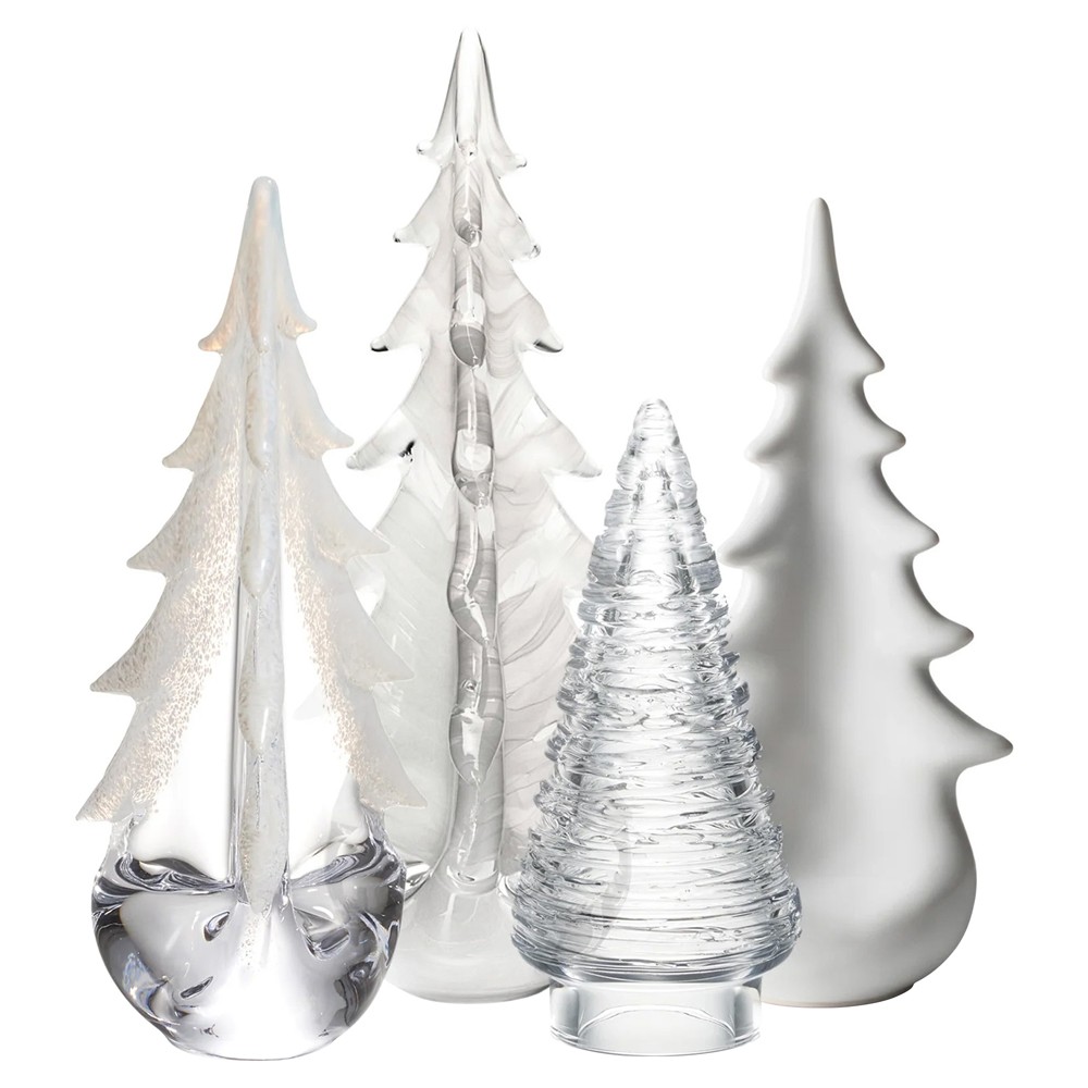 Simon Pearce Merry Bright Forest Modern Classic Glass Evergreen Trees - Set of 4