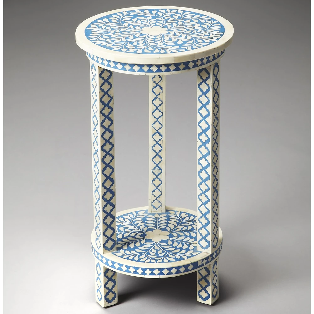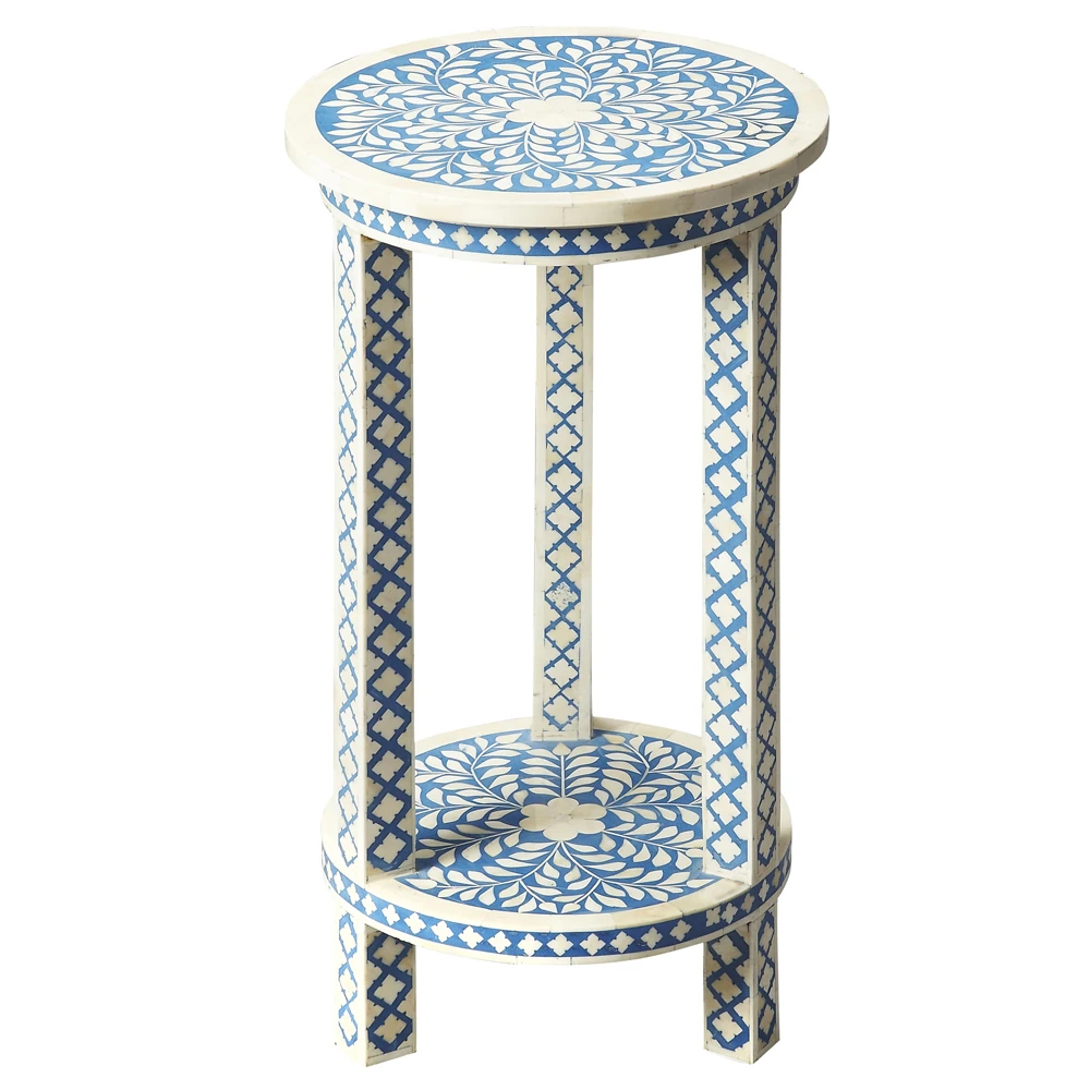 Vivianna Coastal Beach Blue White Bone Inlay Drink Table
