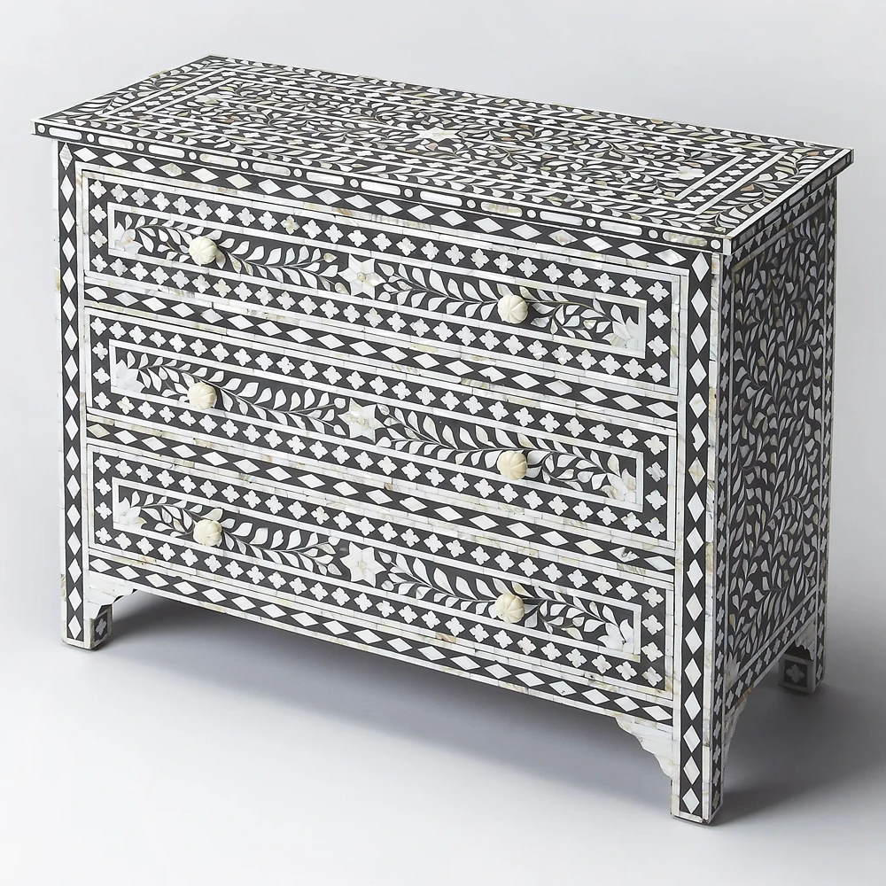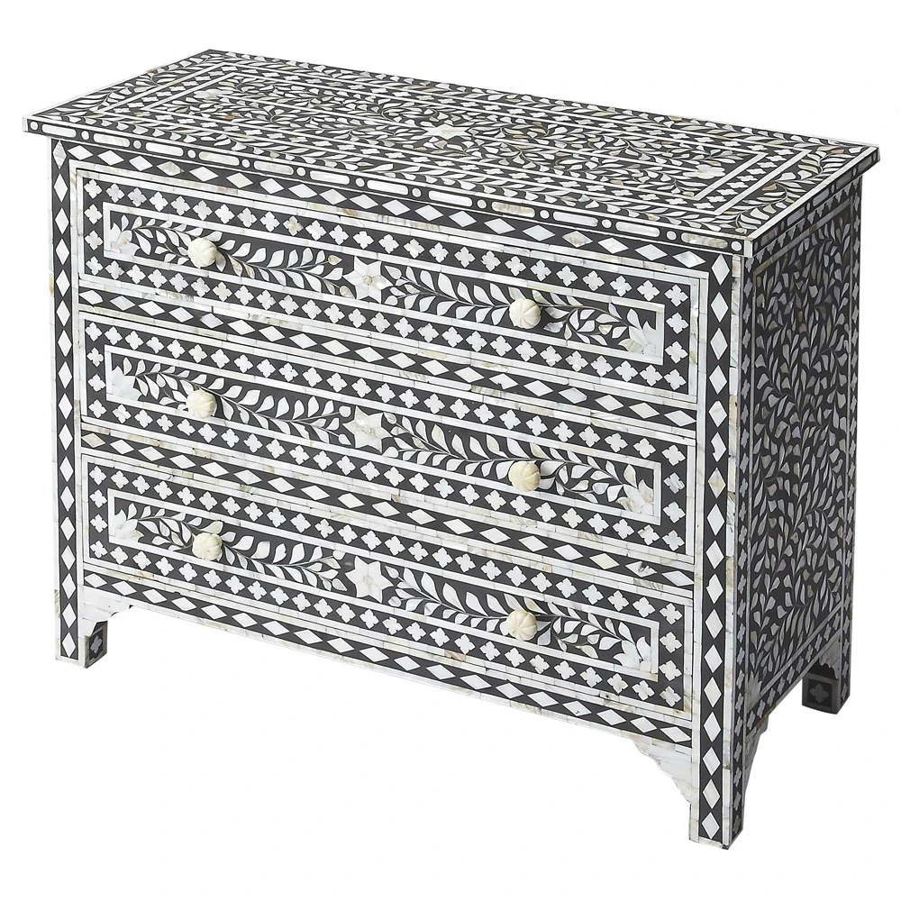 Vivianna Modern Classic Black White Mother Of Pearl Dresser