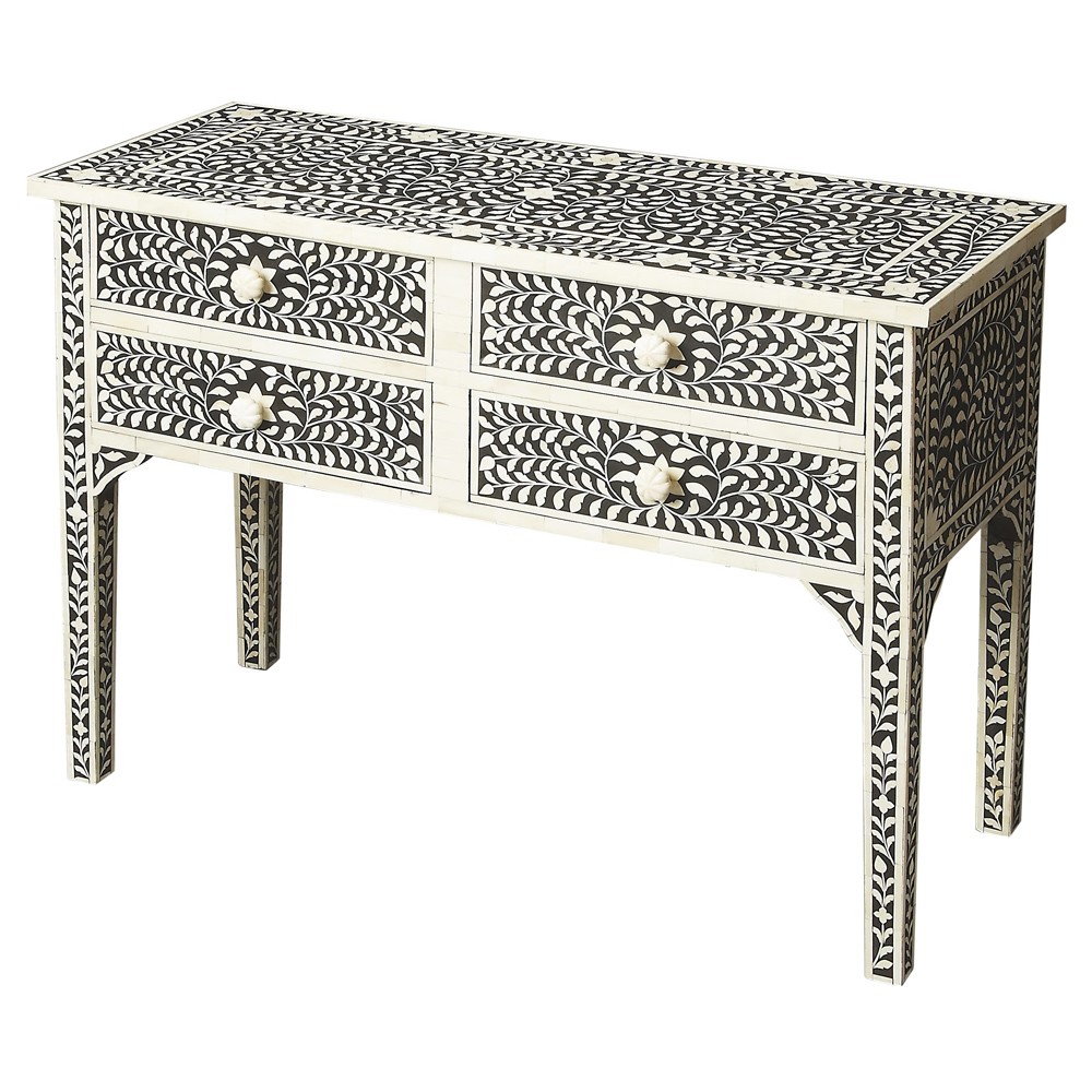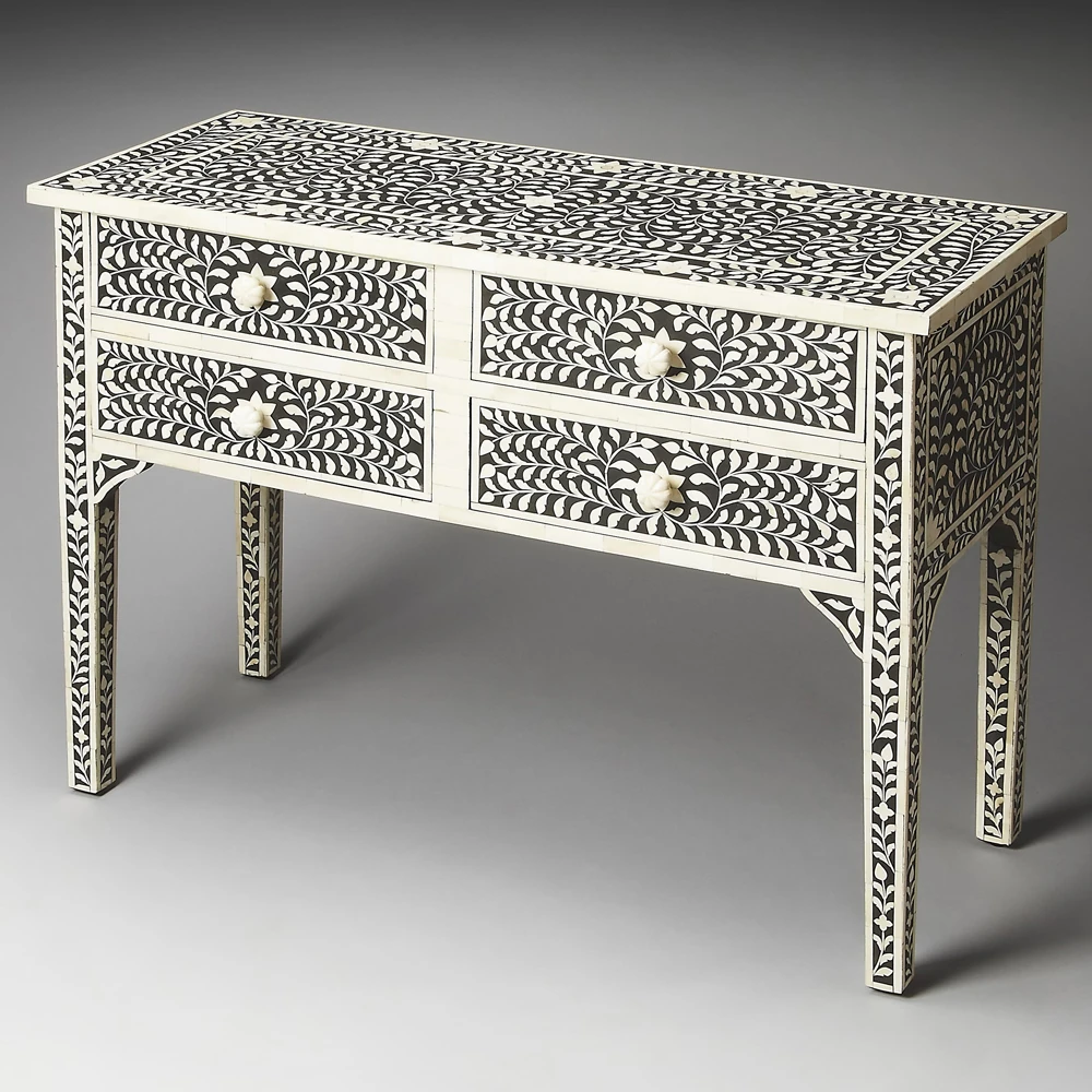 Vivianna Modern Classic Black White Bone Inlay Console Table