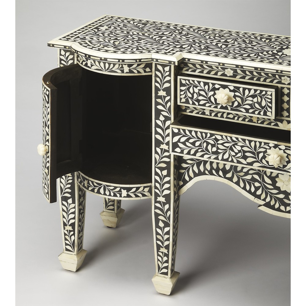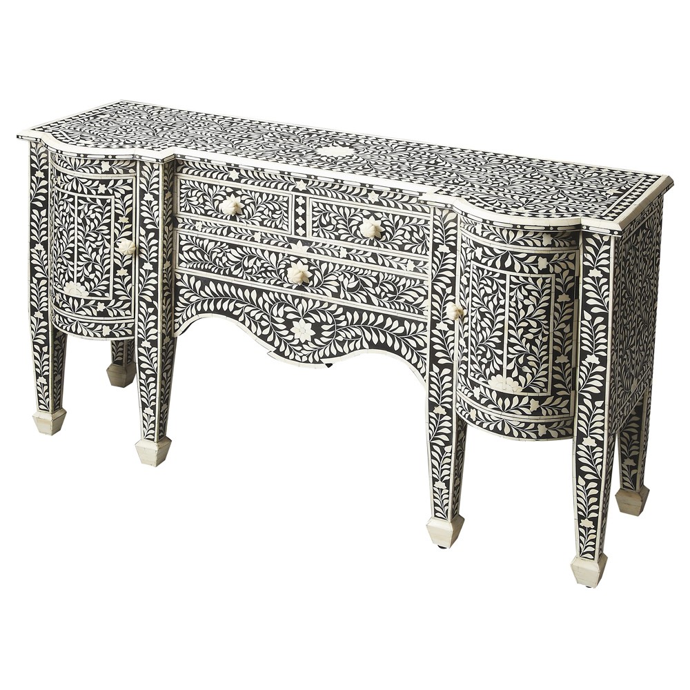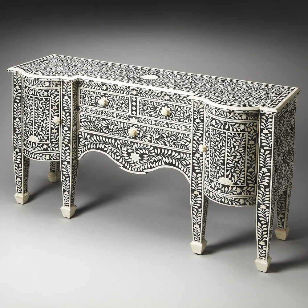 Vivianna Modern Classic Black White Bone Inlay Sideboard