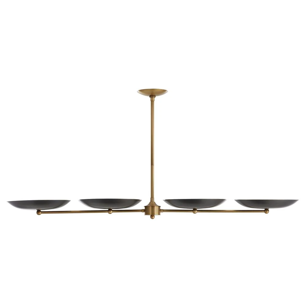 Griffith Mid Century Antique Brass Frame Black Shade Linear Chandelier
