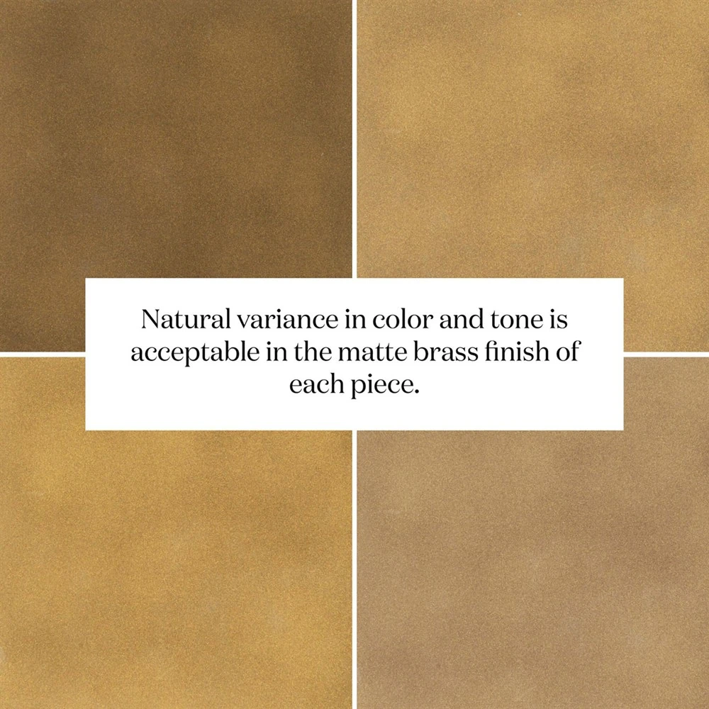 • Natural variance in color and tone is acceptable in the matte brass finish of each piece