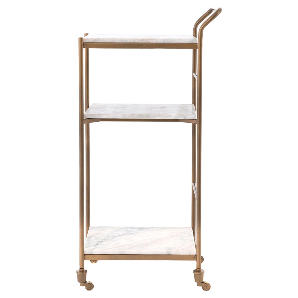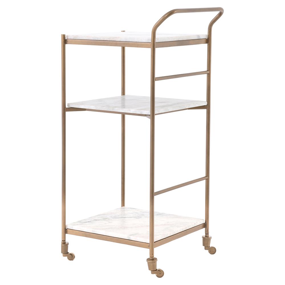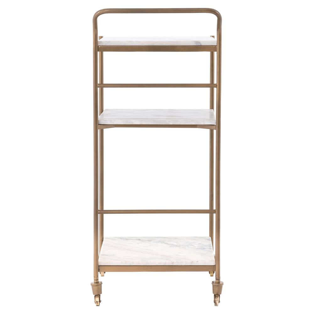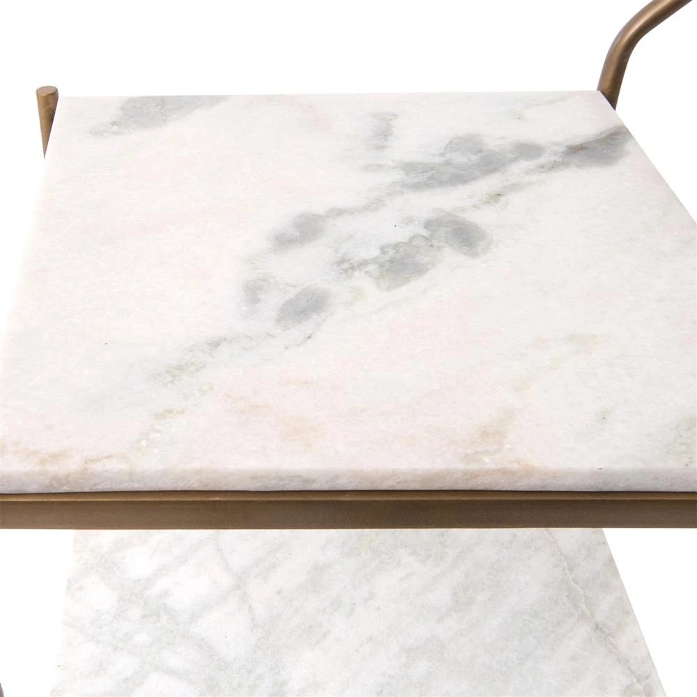 Kian Modern Classic Brass Frame 3-Tier Marble Bar Cart - Small