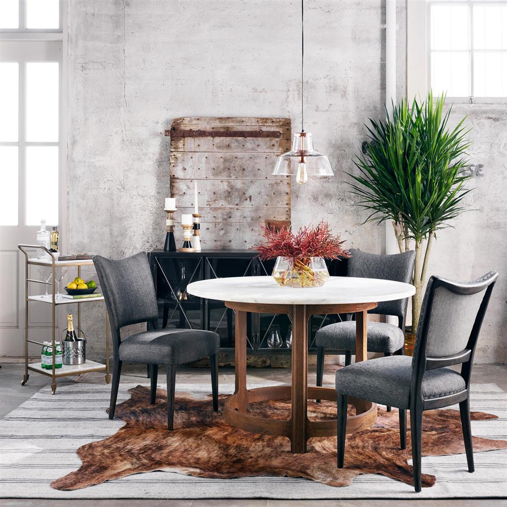 • Kian Industrial Loft White Marble Hammered Iron Round Coffee Table|Kathy Kuo Home