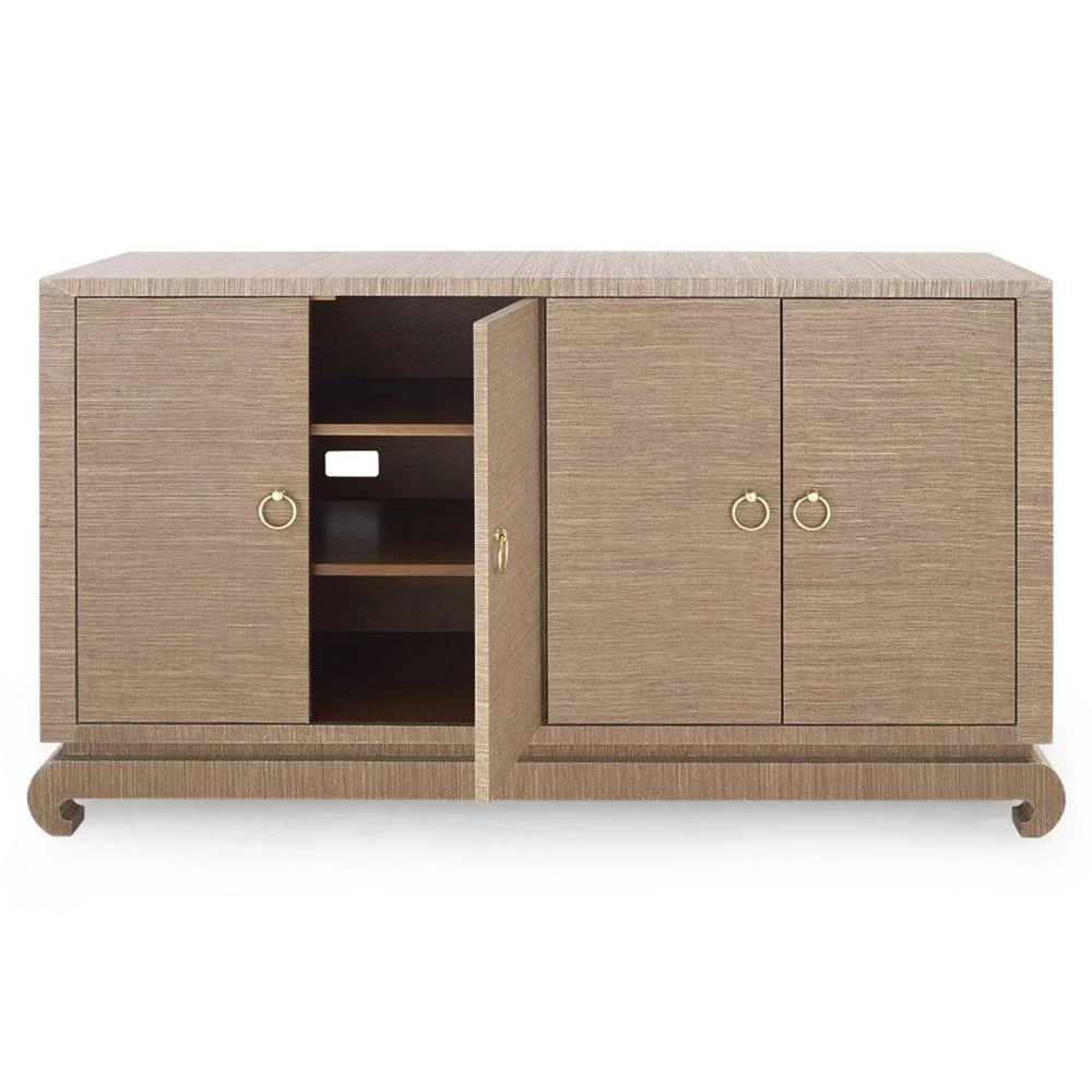 Meredith Regency Brown Grasscloth Chow Cabinet