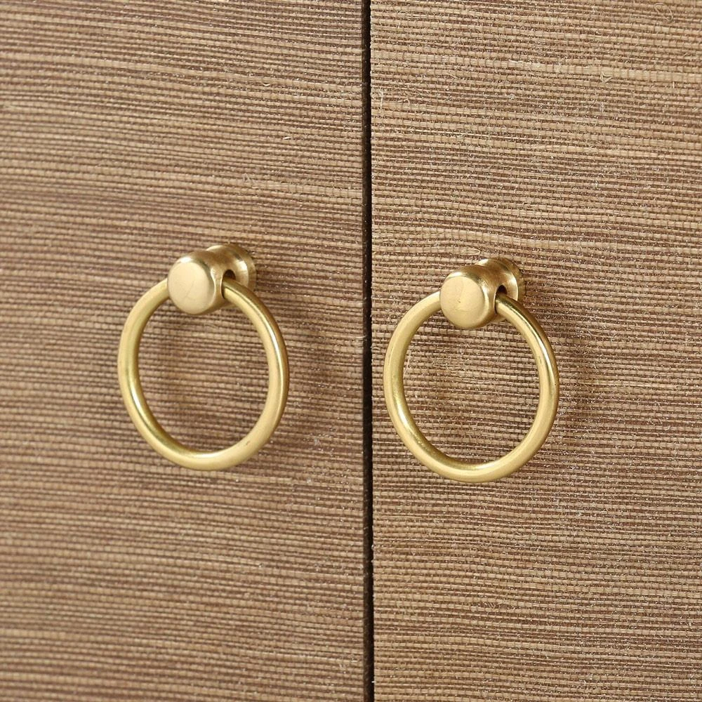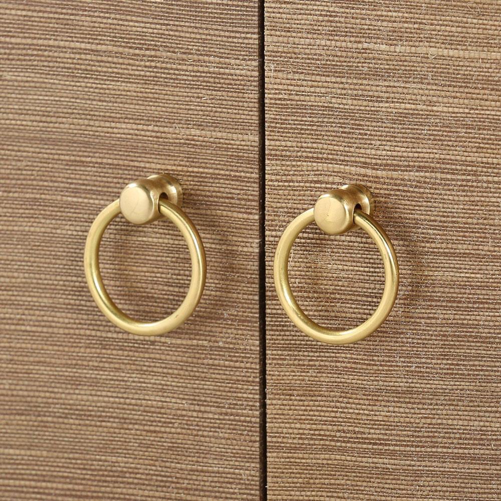 • Brown lacquered grasscloth finish with polished gold ring hardware