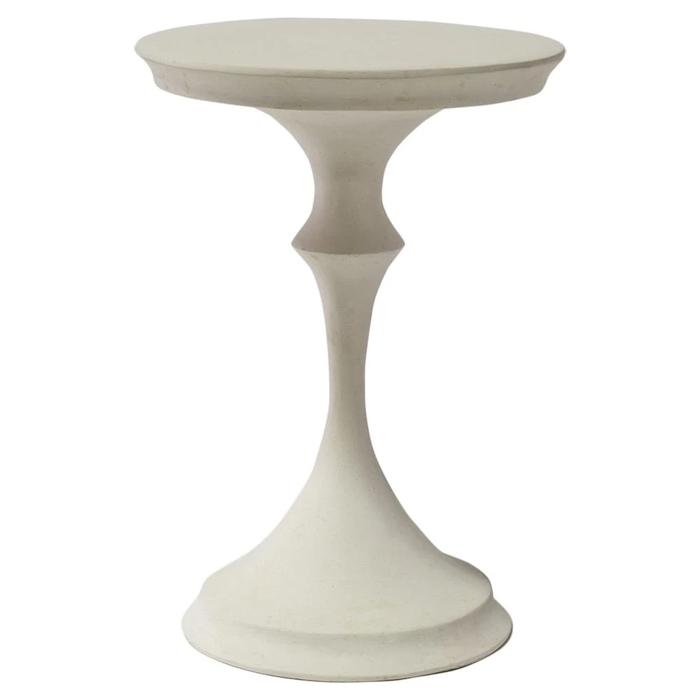 • Regine Modern Classic Beige Concrete Round Pedestal Outdoor End Table|Kathy Kuo Home