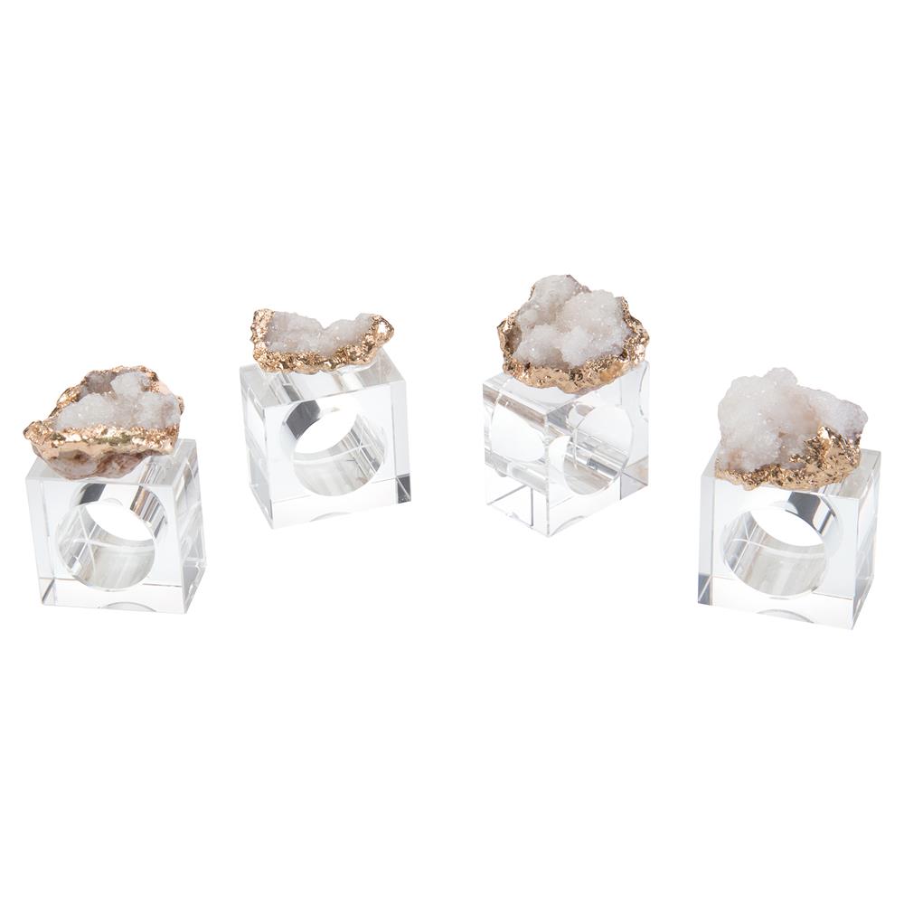John-Richard Gold Plated White Geode Crystal Napkin Rings - Set of 4