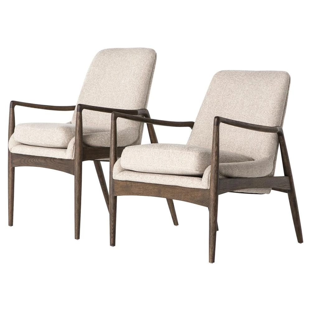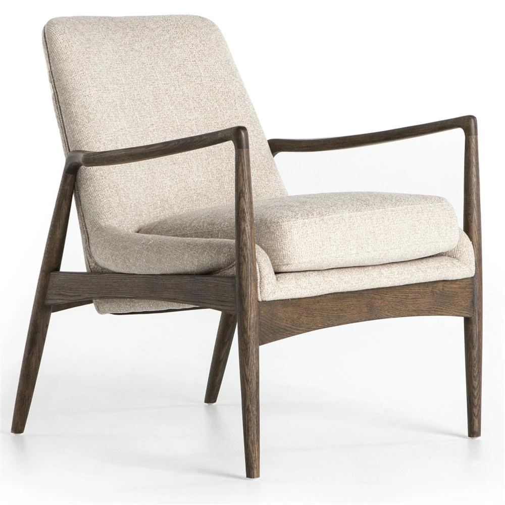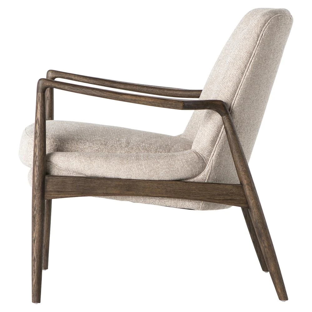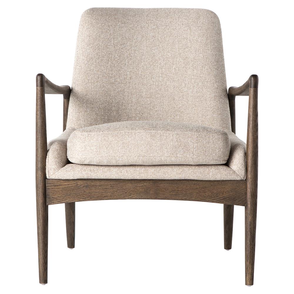 Olena Mid Century Beige Upholstered Brown Wood Frame Living Room Arm Chair