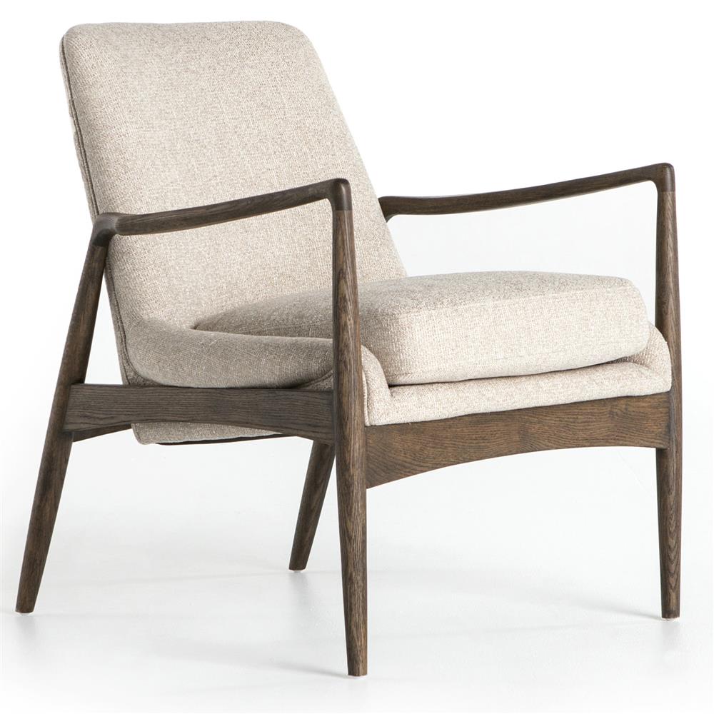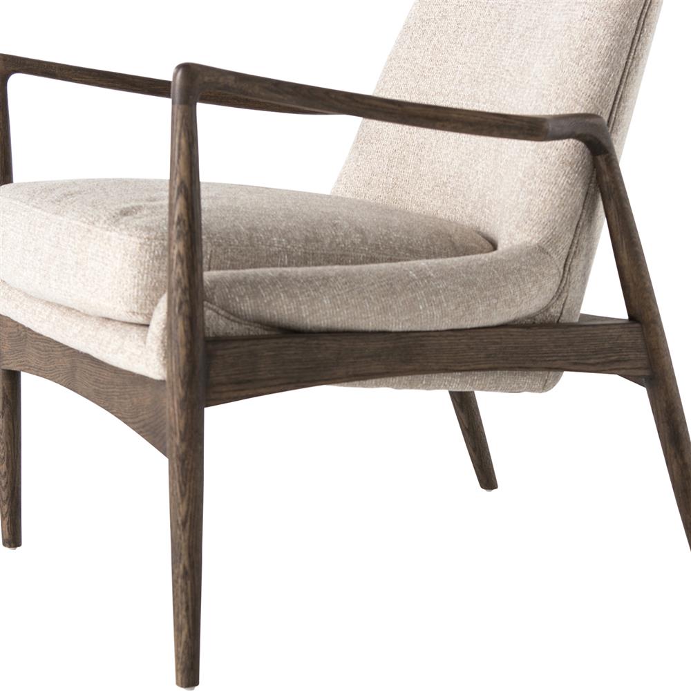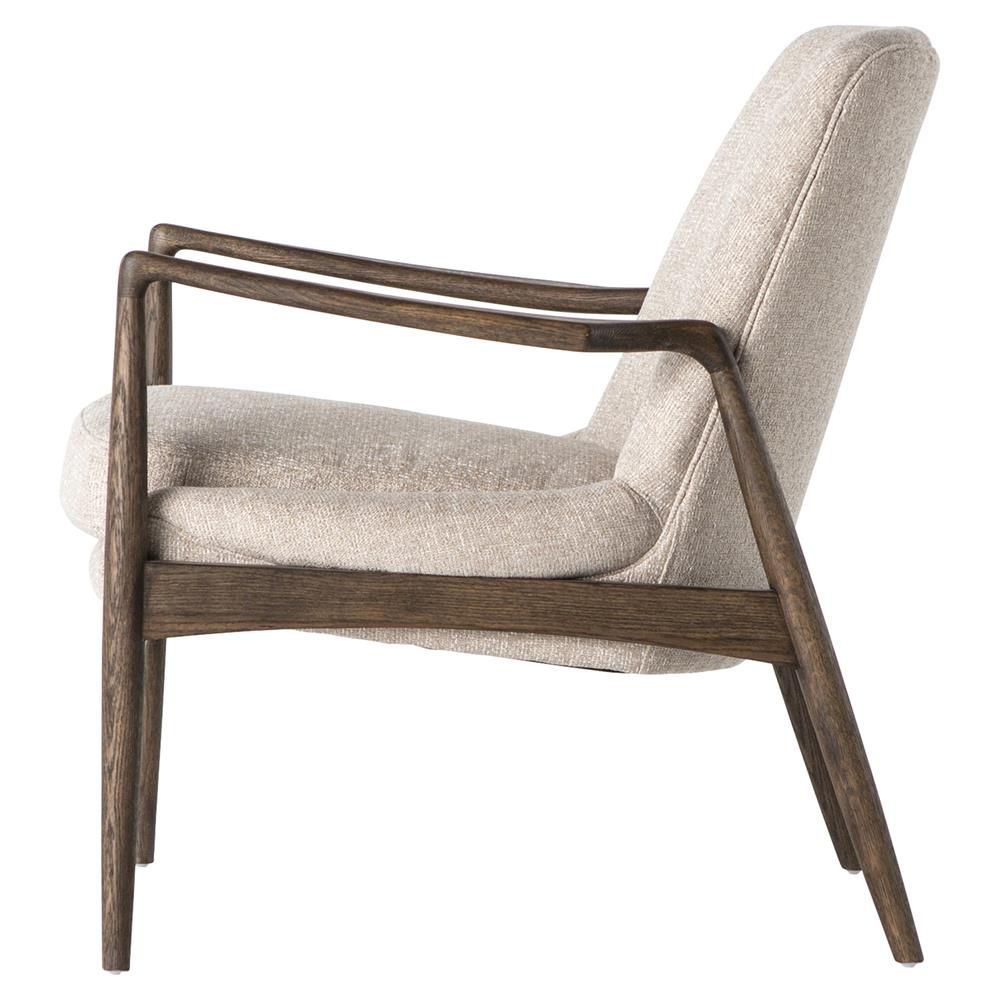 • John French Country Brown Oak Wood Beige Performance Cushion Occasional Chair|Kathy Kuo Home