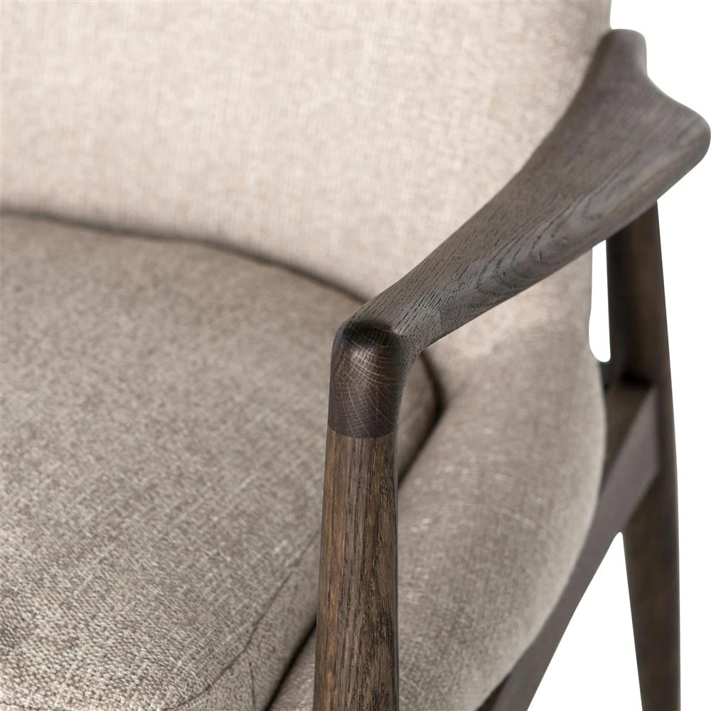 Influenced by mid-century modern style, our Olena Mid Century Beige Upholstered Brown Wood Frame Living Room Arm Chair features a sculp ... more