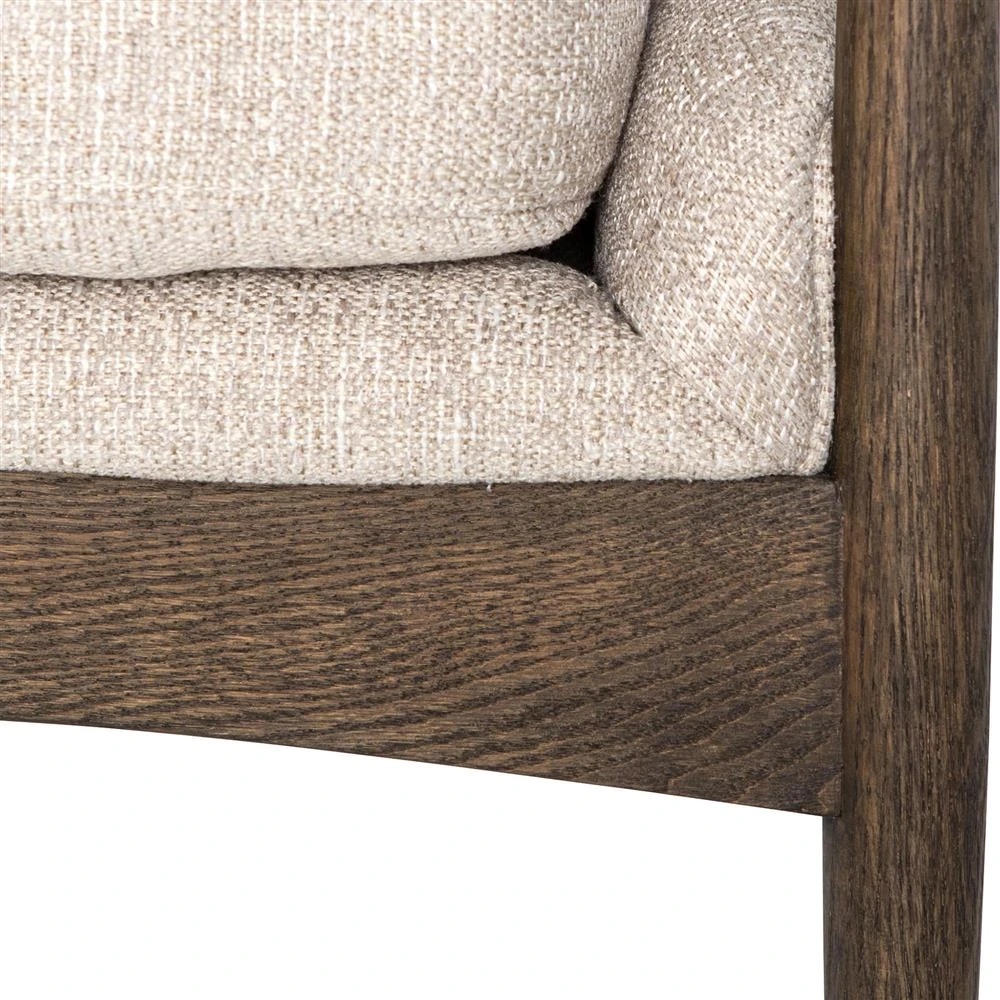 John French Country Brown Oak Wood Beige Performance Cushion Occasional Chair