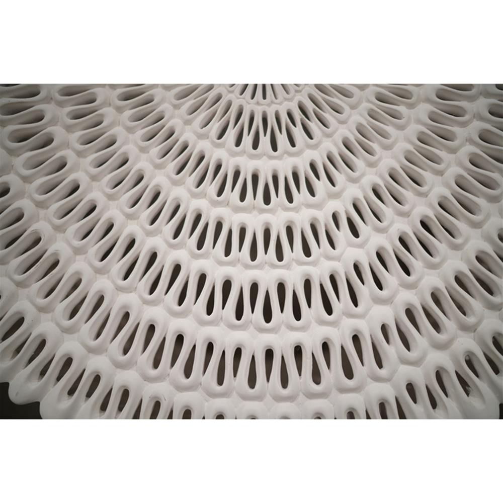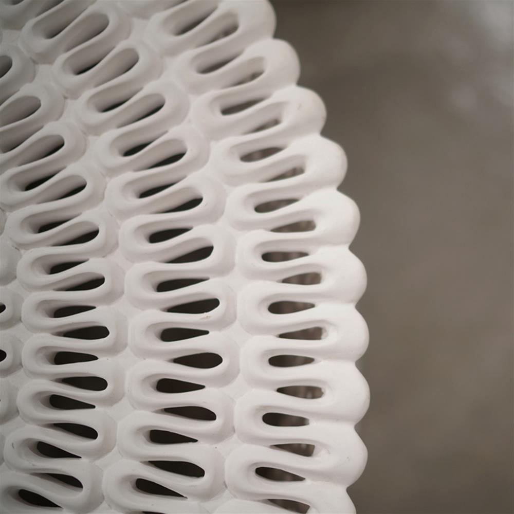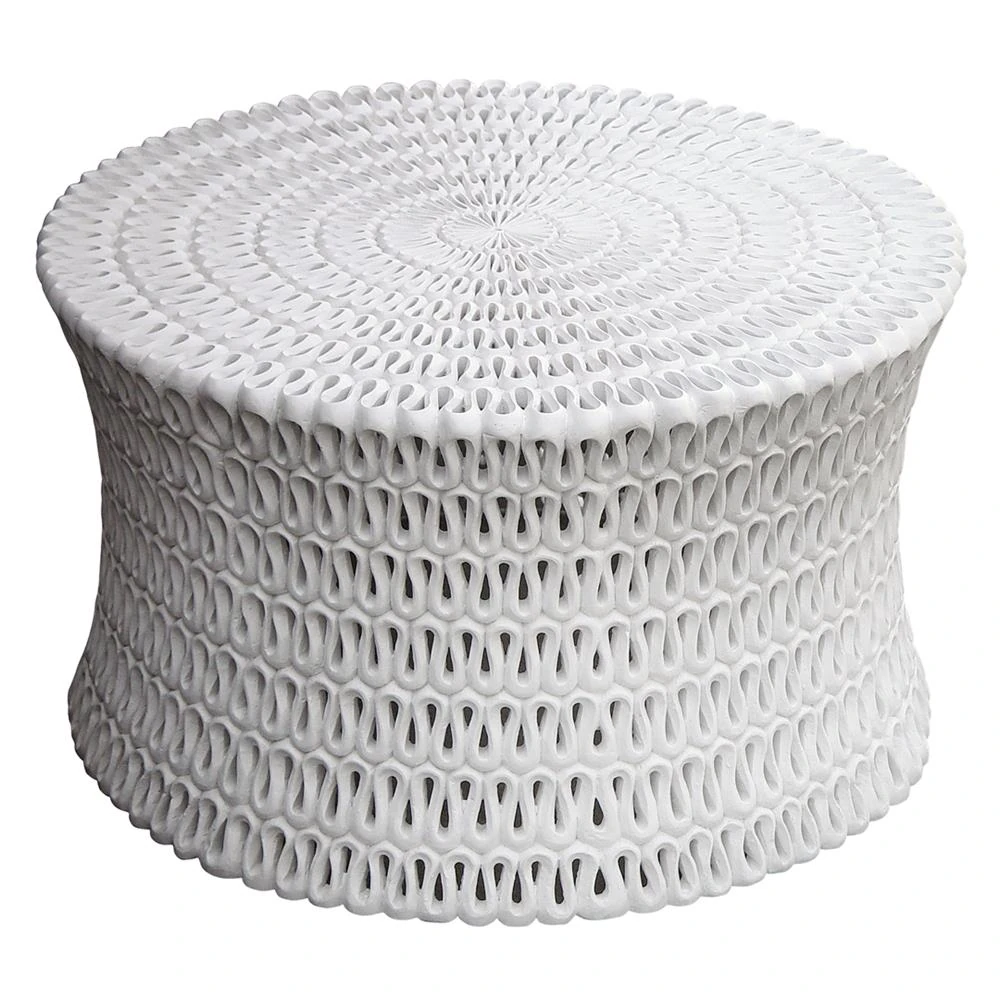 Cast in matte white resin, this circular table resembles a large piece of ribbon-coral. The pierced detailing creates a delicate, sculp ... more