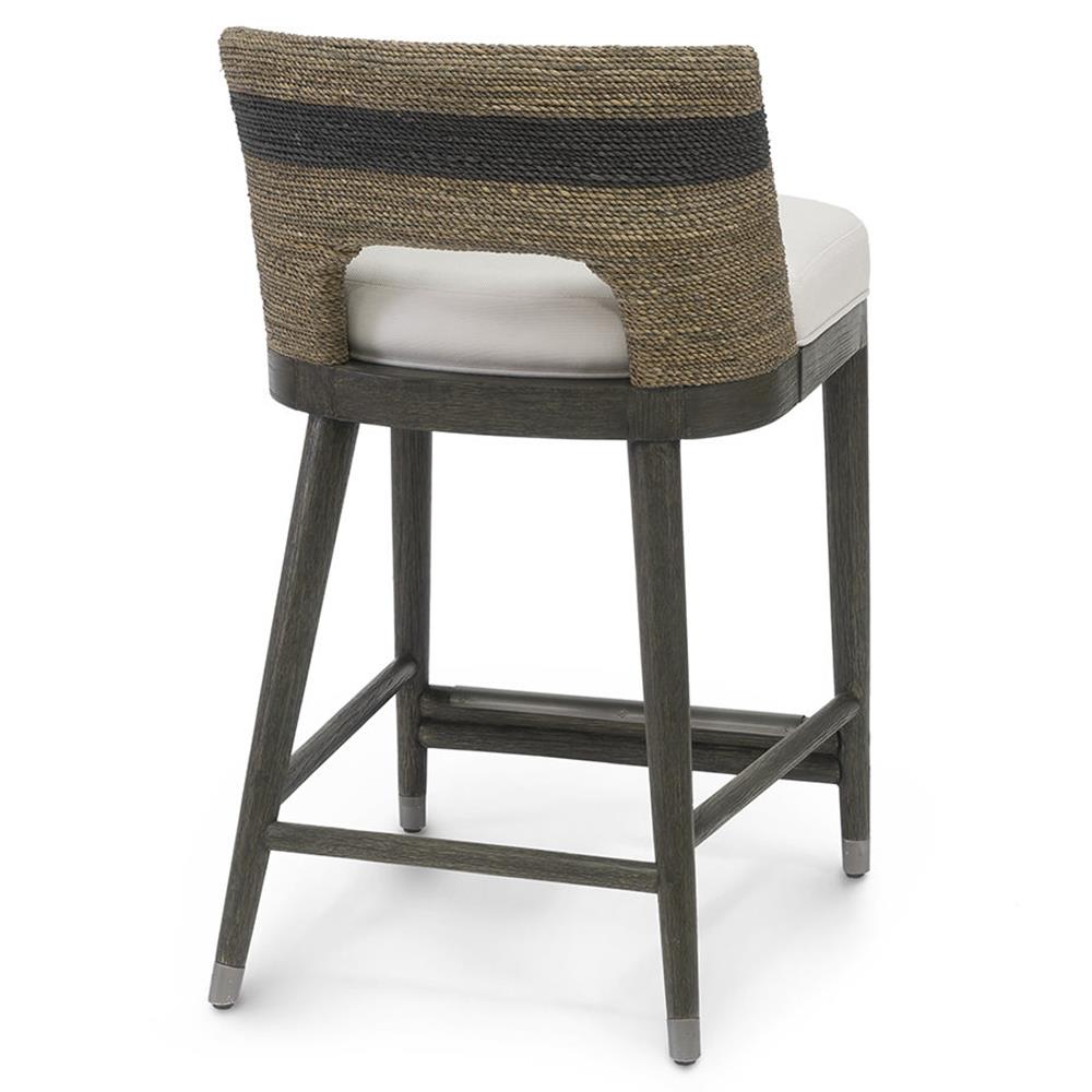 Palecek Fritz Coastal Beach White Performance Striped Grey Rope Counter Stool
