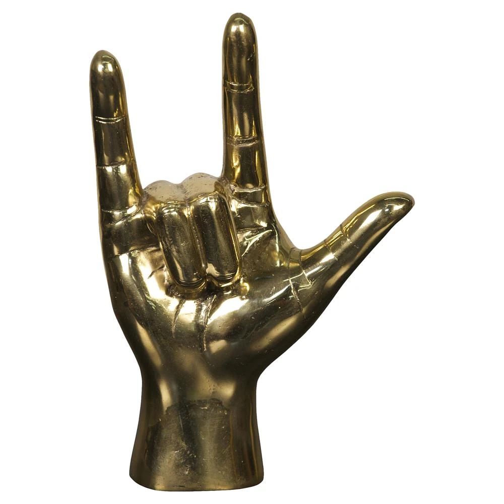 Farella Industrial Loft Brass I Love You Hand Sculpture