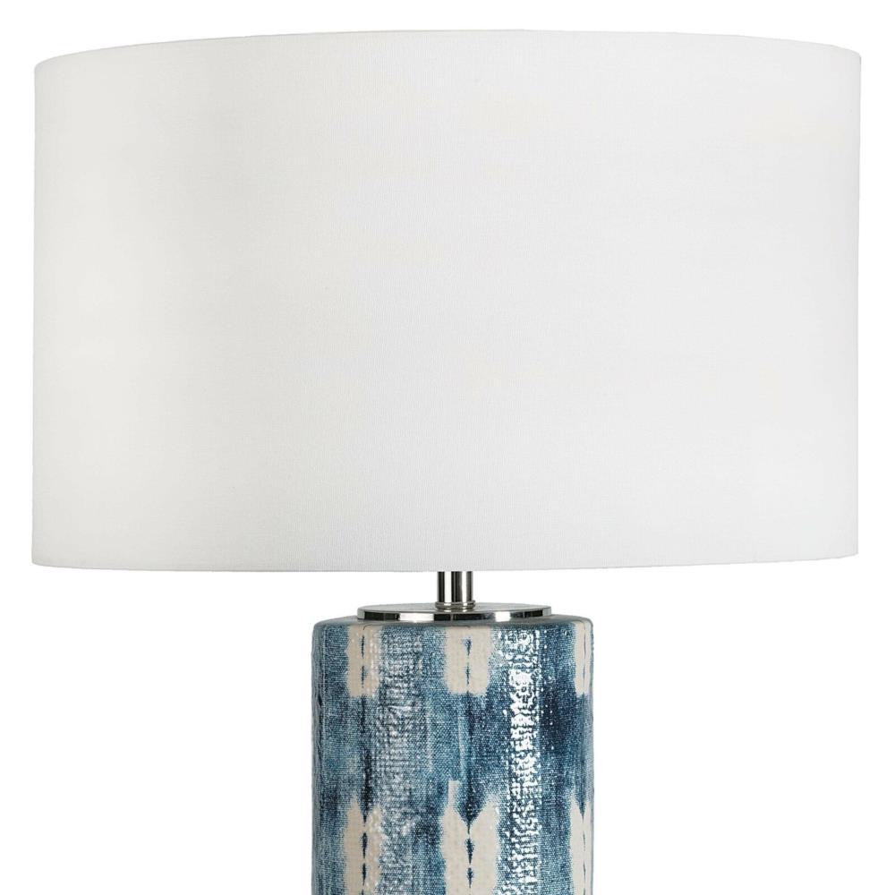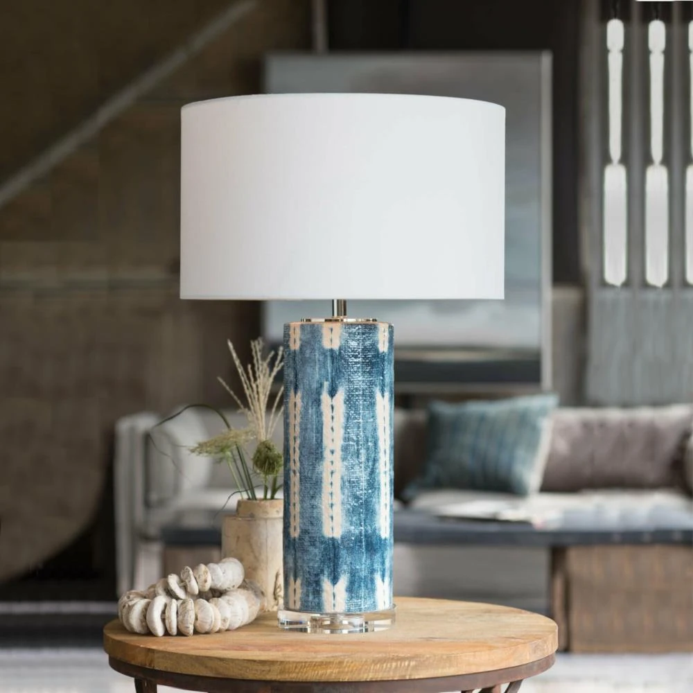 A mix of coastal and contemporary, this beautiful indigo table lamp has pride of place in any space. Topped with a winter white fabric ... more